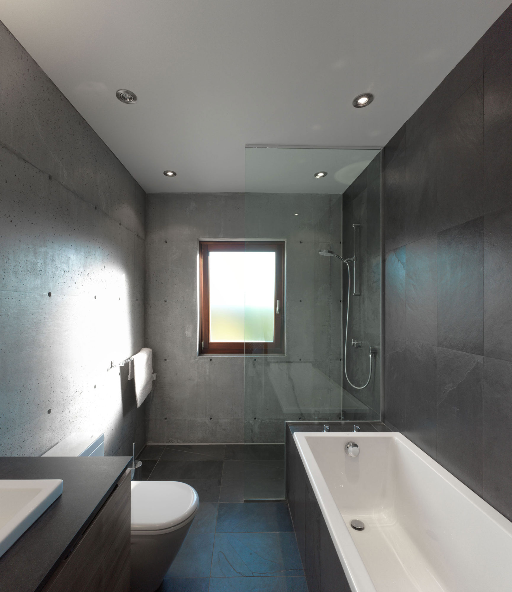 Its soberly aspect is mitigated by the natural light that enters through the large open windows.