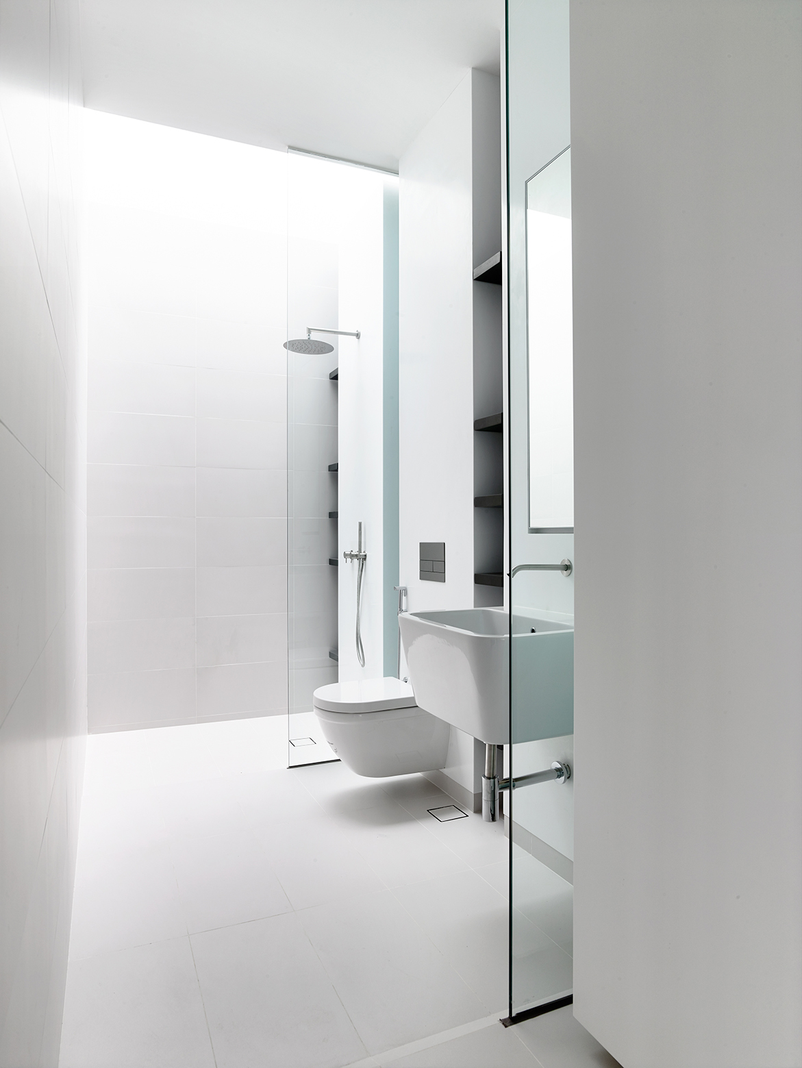 The pond itself is encircled by a timber-clad box, while the entire courtyard is surrounded by a double volume living room and a beautiful dining area. The courtyard’s second story is located in front of the master bedroom and directly above the dining room. Aside from providing much needed privacy, the courtyard also allows natural light to flow freely throughout the living areas and helps to minimize unwanted noise that originates from a nearby road.