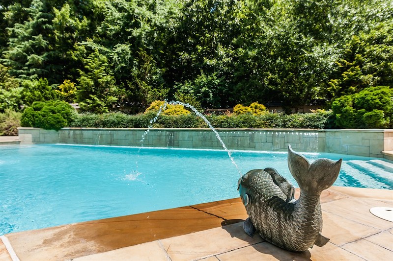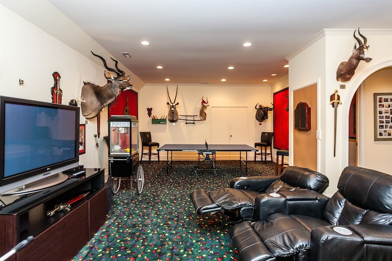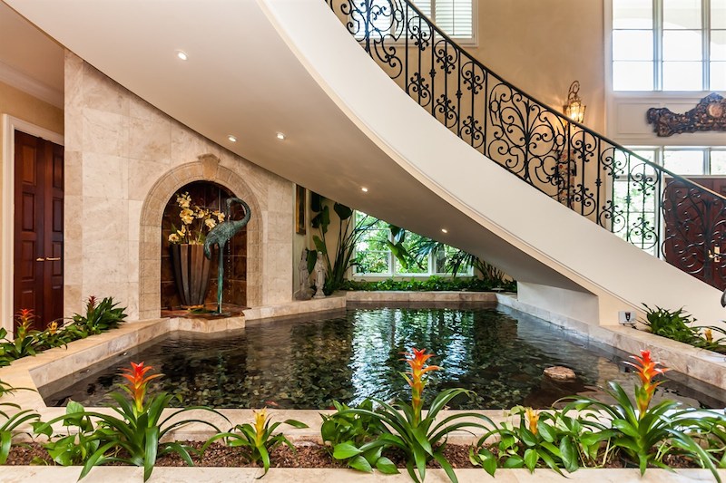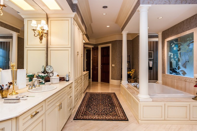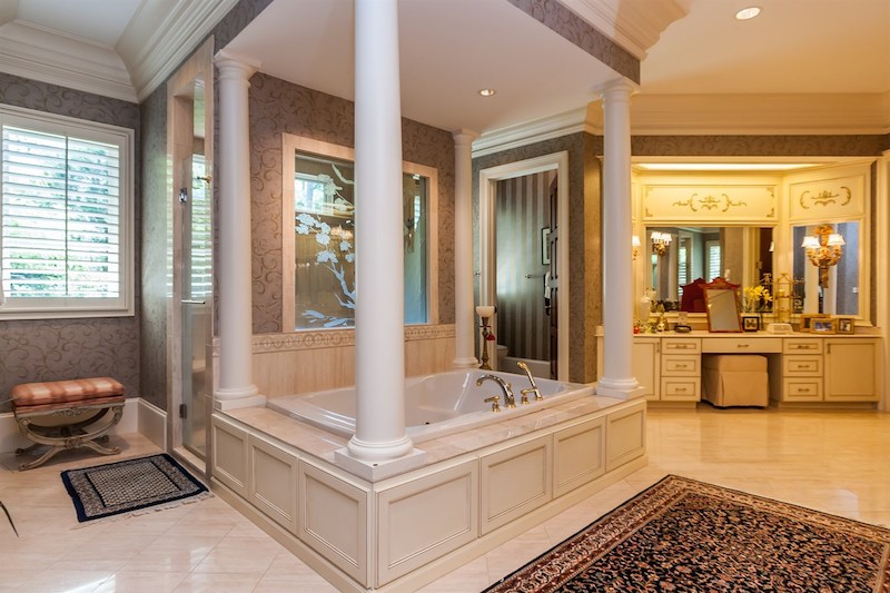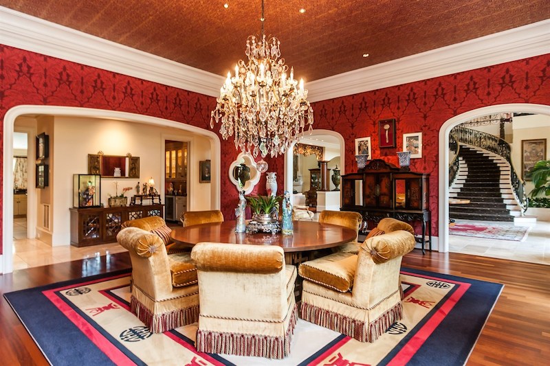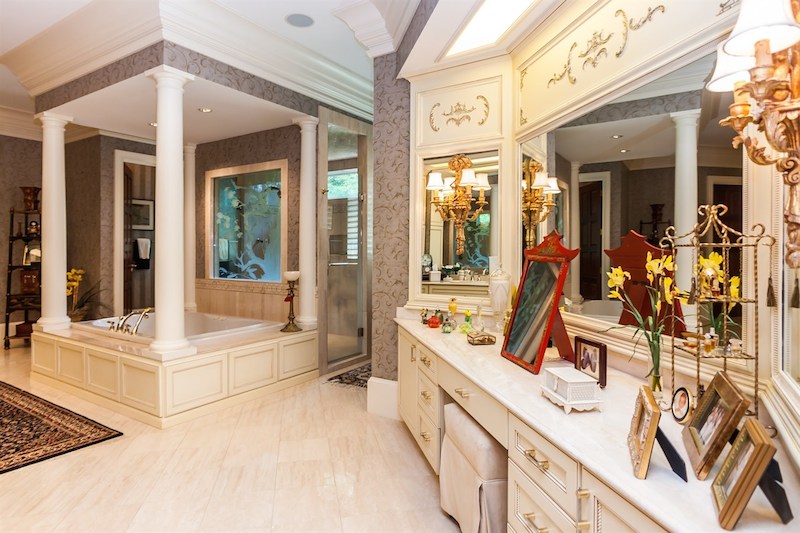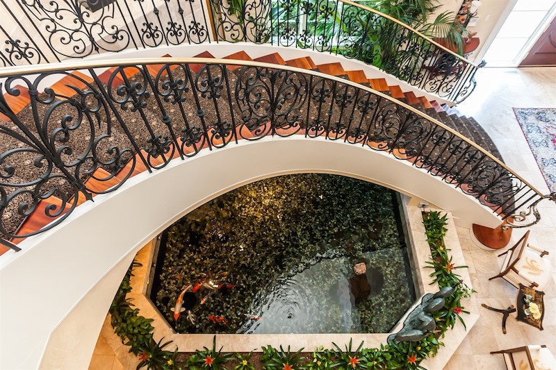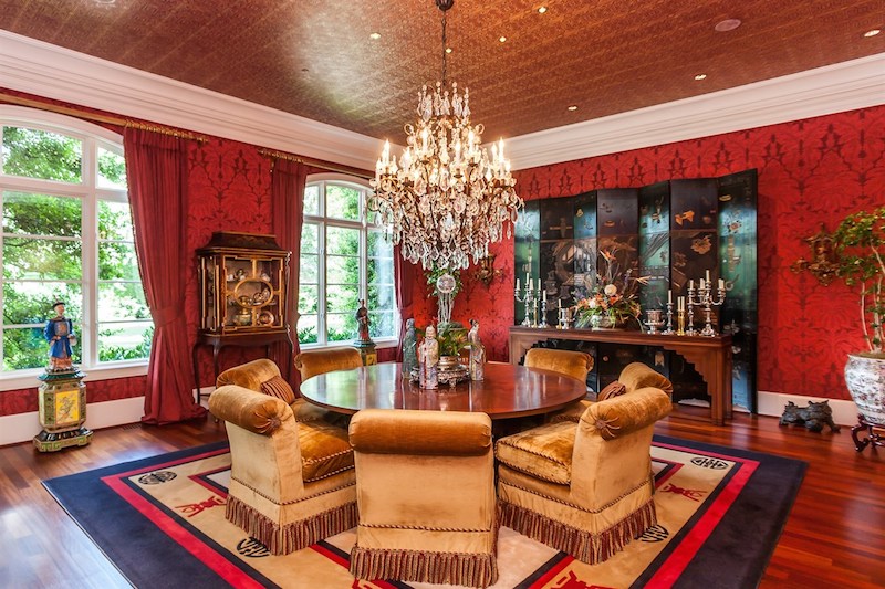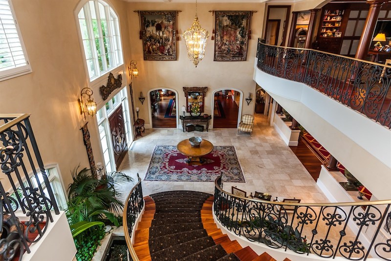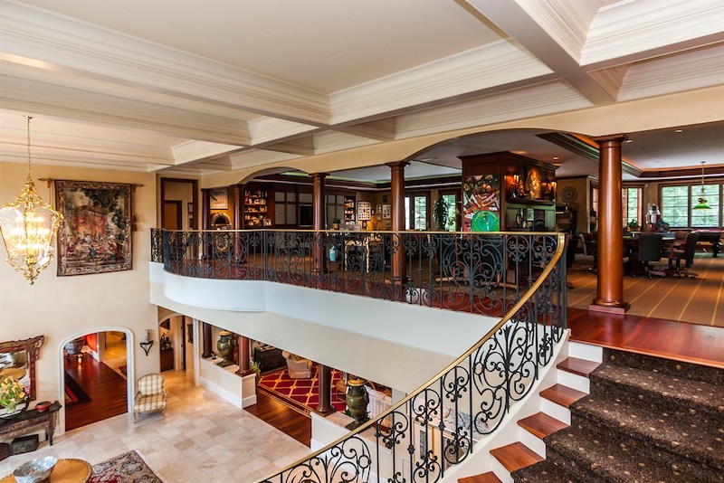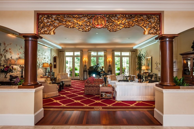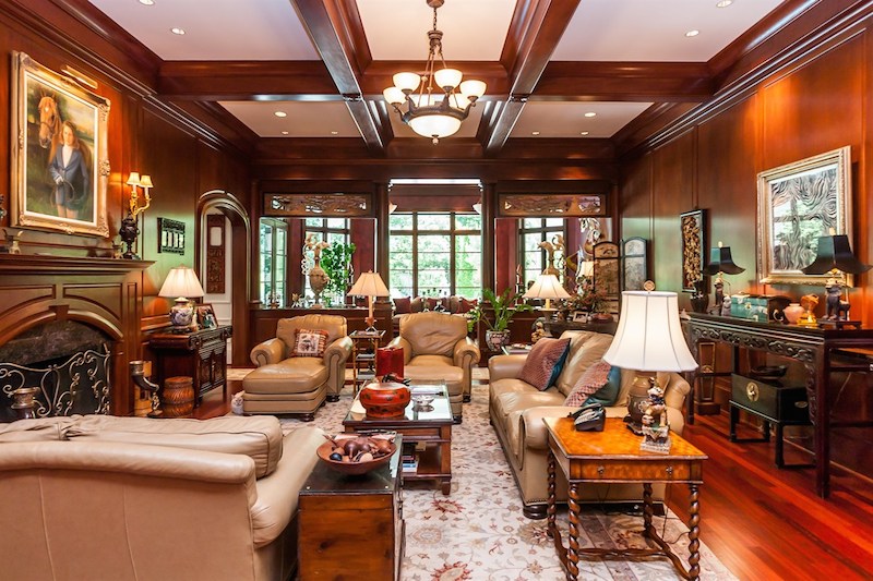 Right from its entryway, this home impresses instantly with double carved mahogany doors that open up towards a gorgeous 2-story foyer, a Koi pond and an elegant staircase. Accommodations include 6 bedrooms as well as 6 full bathrooms and 4 half ones, but there is also a special in-law suite available. The master suite features its own fireplace and sitting area, while a nearby private office is connected to a swimming pool area. Other highlights include chandeliers, a grand piano, stunning decorations and exceptional woodwork throughout.