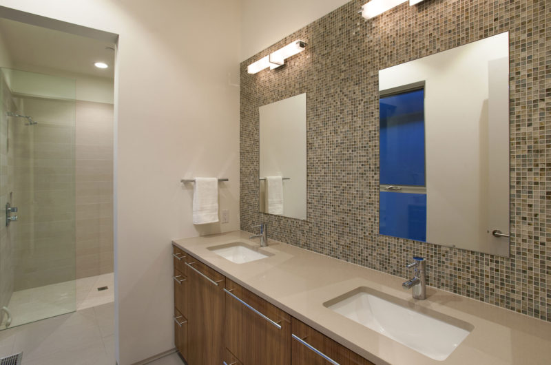Maximizing western views of the San Jacinto mountain range, while minimizing the overheating that accompanies expansive west facing windows, drove site planning and architectural details. A system of rolling shade panels protects west windows from the low angle setting sun and provide delight with ever-changing shadow patterns.