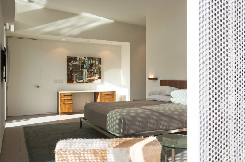 Since San Jacinto is well known for its hot summer days, the architects in charge of the construction process implemented a series of passive cooling technologies as well as deep roof extensions that provide much needed shade and comfort. The windows facing the west side of the home are sheltered from the sunrays with the help of a series of rolling shade panels.