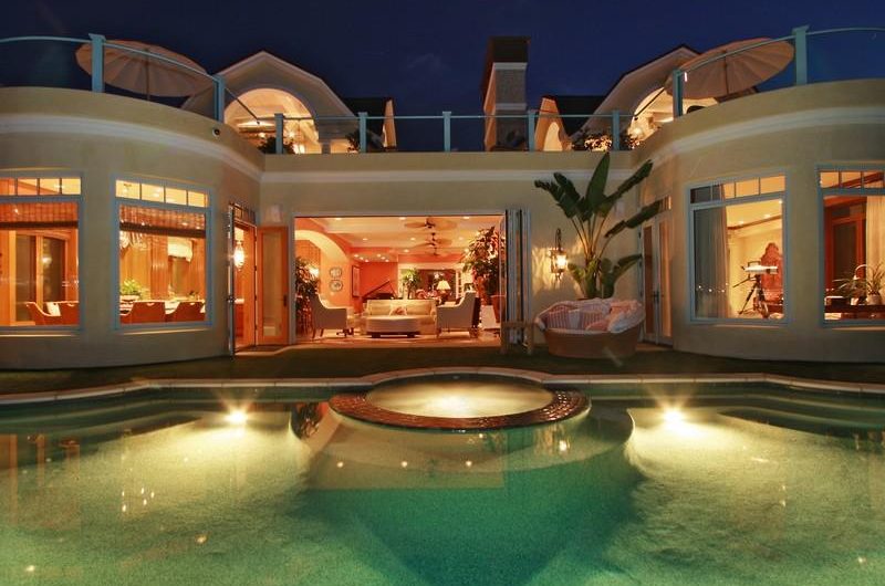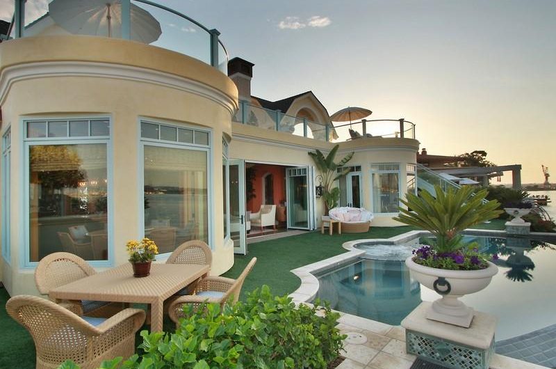 Coronado Bay Front Estate is a Dutch style residence that features 4 bedrooms, 4 full and 3 half bathrooms, a 2 car garage, a guest house with two separate suites and an extra 5-car garage. An infinity edge pool defines and frames the property and the gorgeous gardens together with the gym and the private spa add value to it.