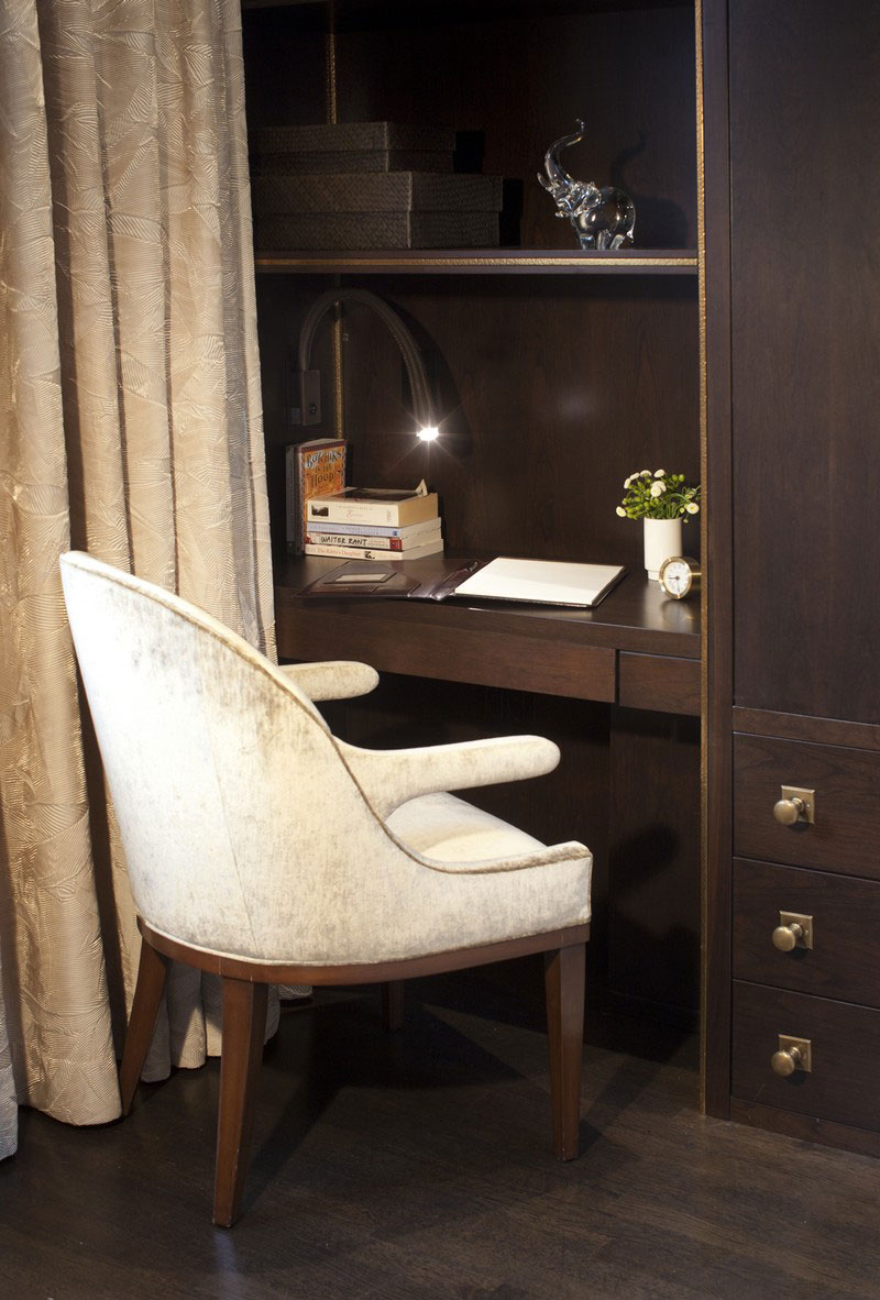The new space was maximized with elegant built-ins, in dark and light colors, and was added a transitional stairway from family to “grown-up space” to create a precious environment.