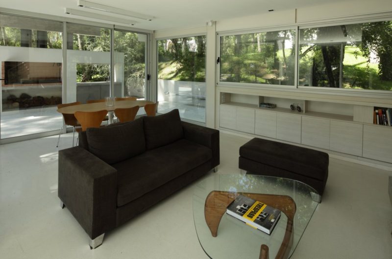 Though, because of the floor-to-ceiling windows, it seems like the garden enters inside and almost every corner is visible from outside, this thing is not an inconvenient because when the big curtains are drawn, privacy is at home.