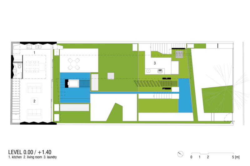 With just 1,969 square feet of space available, the abode incorporates a solarium, a garden, a swimming pool, a cooking and socialization space, a bedroom and special accommodations for the caretaker. The garden can be found at the ground level, while the apartment level is found directly underneath the swimming pool, which is located the top level along with the solarium.
