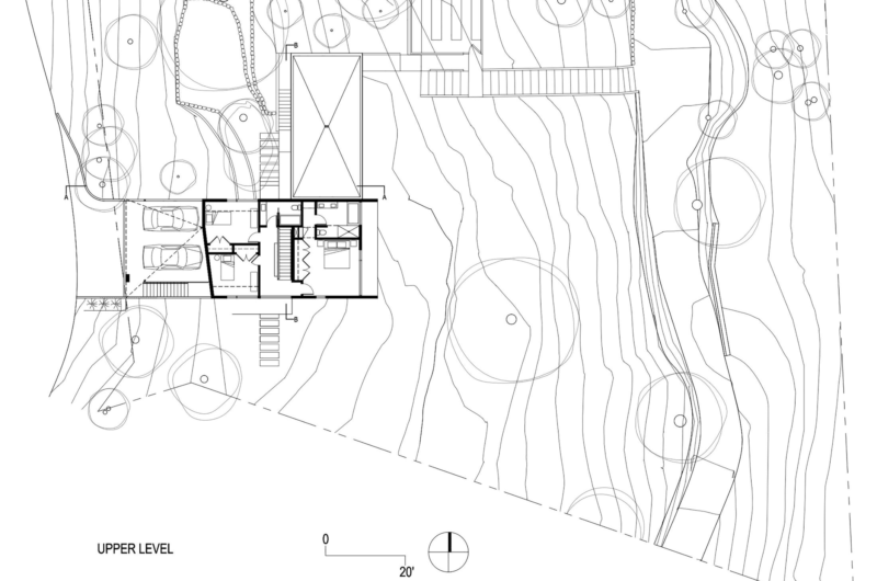 As far as sustainability is concerned, the Hillside House boasts passive heating and cooling solutions as well as a Benjamin Obdyke “Home Slicker” rainscreen, cellulose insulation and a hybrid heating system. Furthermore, over 50% of the lighting arrangements are based on LEDs, while the upper roof of the home includes photovoltaic solar panels.