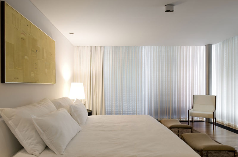 House in Foz Do Duro II is an impressive contemporary project by architect Jose Carlos Cruz. It is a private residence located in Porto, Portugal, on a hill between two other homes and two streets. The fundamental feature of this house is its transparency, which permits natural light to flood the interiors, while affording superb views towards the nearby river and platan trees.