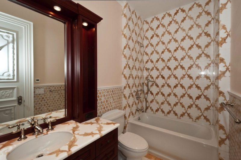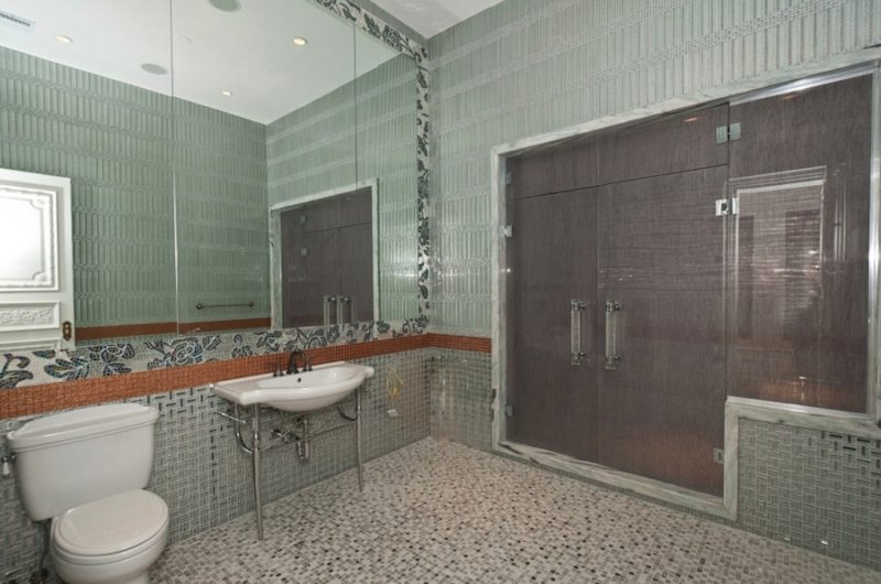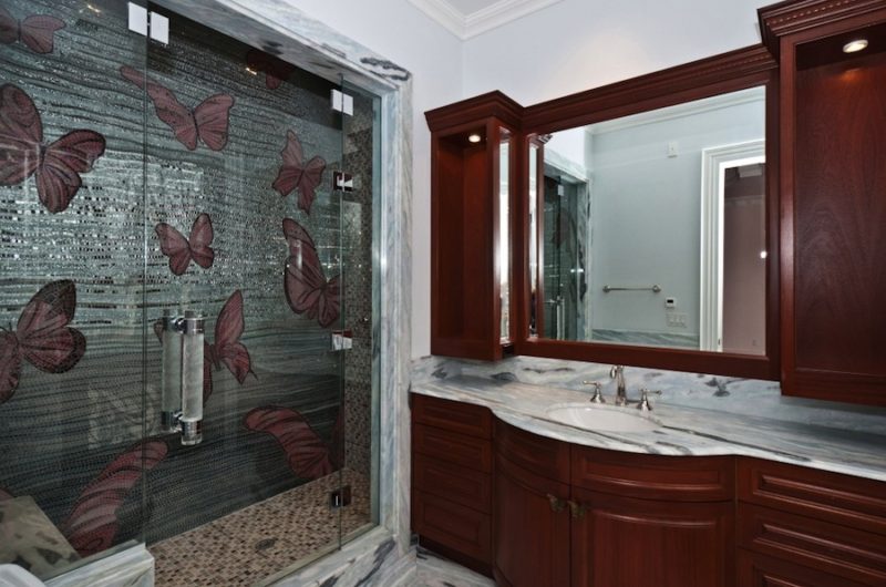 The second level accommodates a large master suite with master bath and his and hers steam showers, Jacuzzi and domed ceiling. If there’s one more thing that we have to add is the fact that all bathrooms in this house are simply “Work of Art” especially because of the use of mosaic tiles and custom made marble finishes.