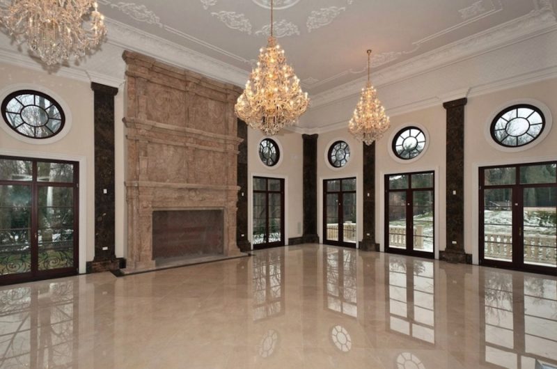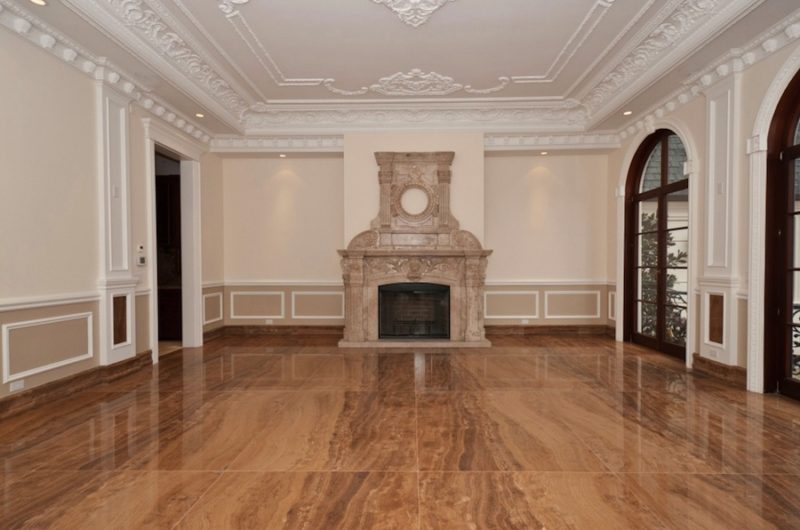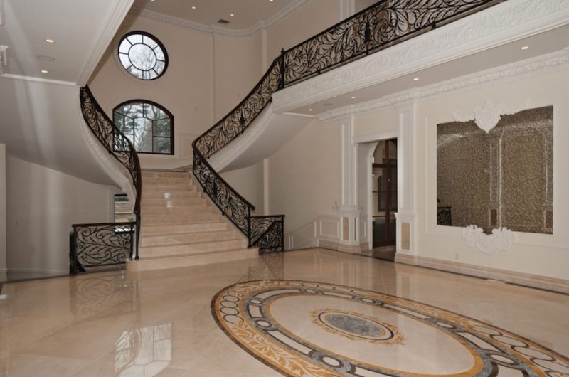 From the moment you enter the doors you are welcomed by a 46′ entry foyer with plaster moldings, raised panels, 36 X 36 CremaMarfil Marble floors and a grandiose staircase.