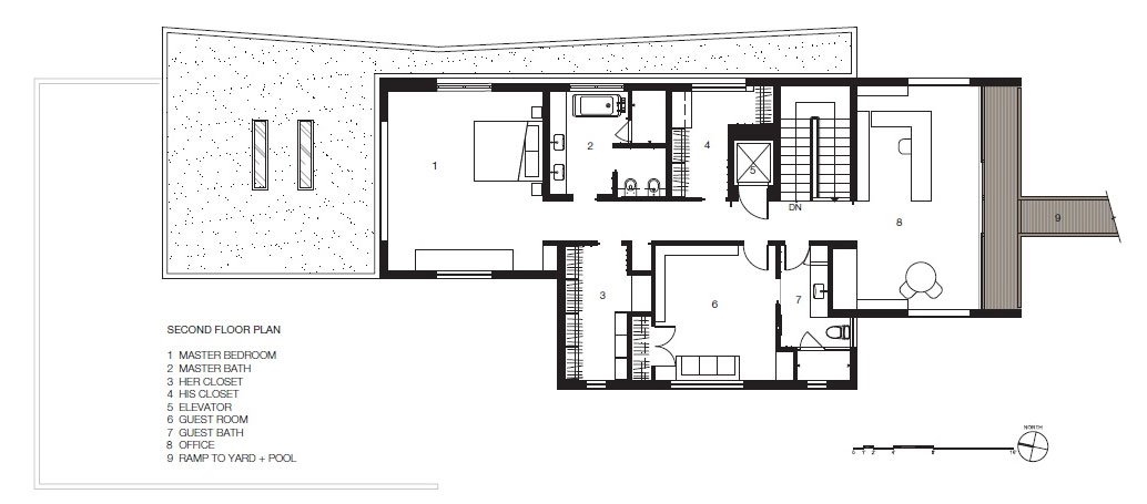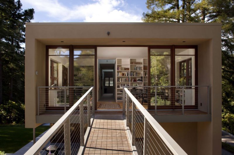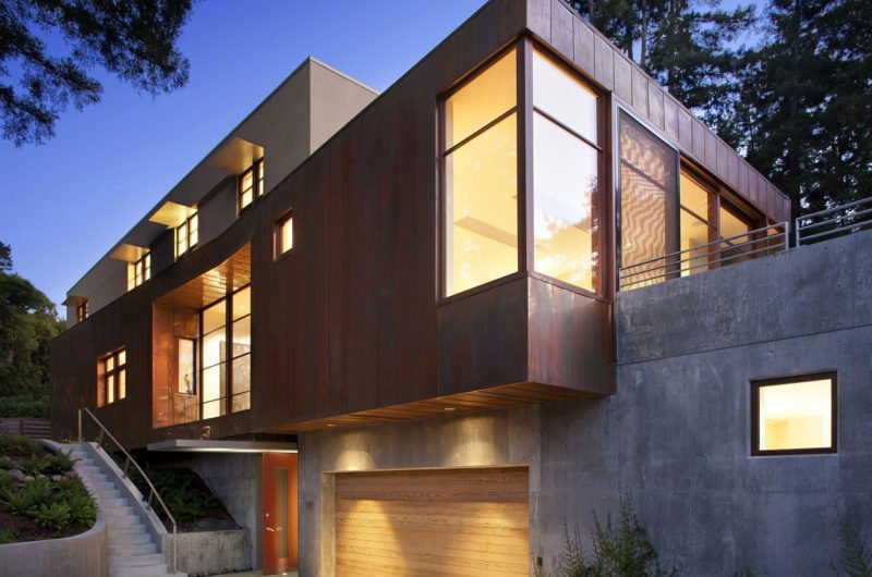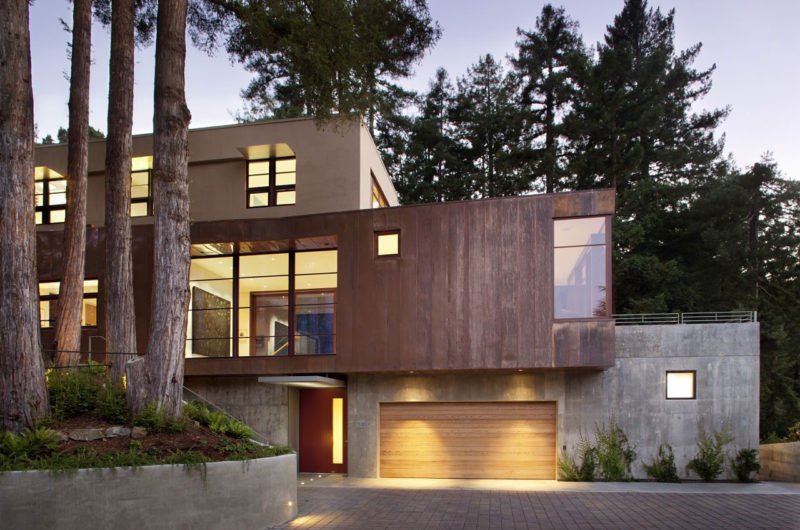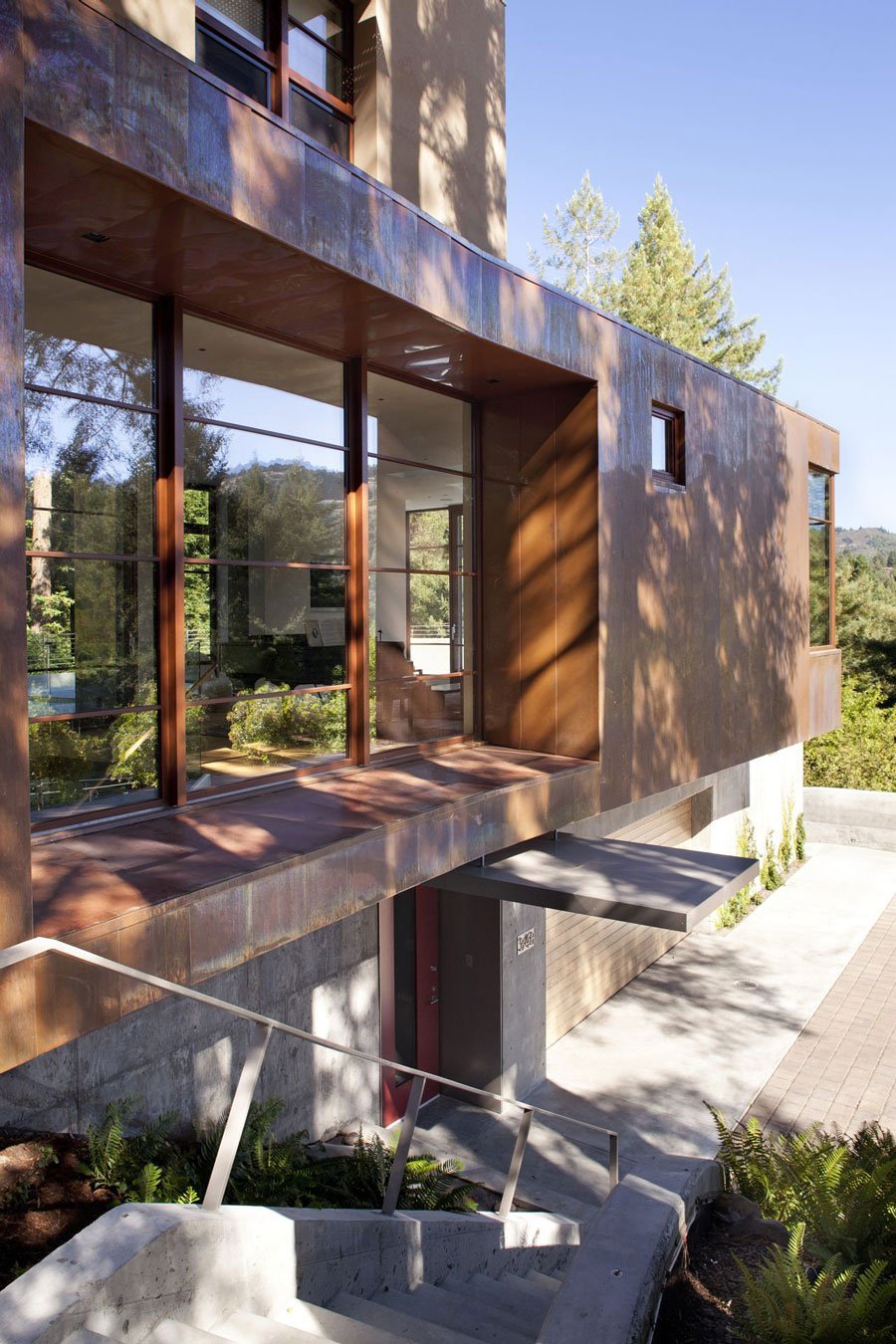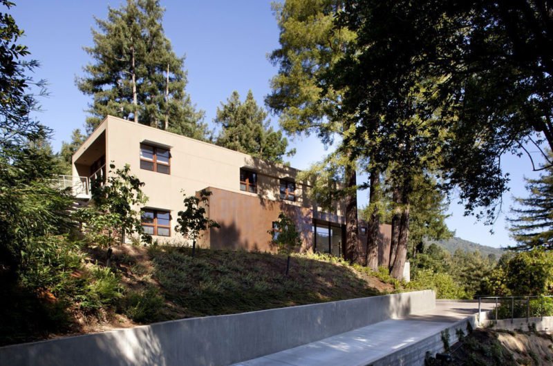 The inspiration for designing this house came from the vast view of Mt. Tamalpais, groves of redwood trees and a steep of incline.