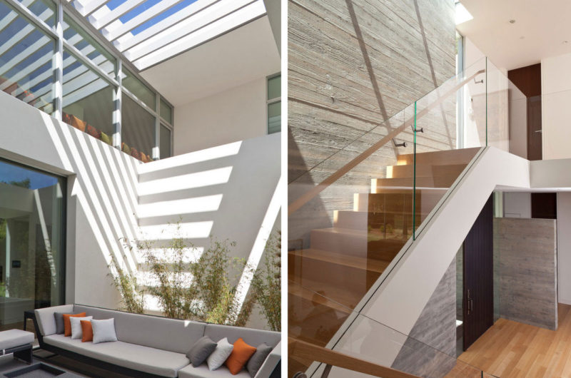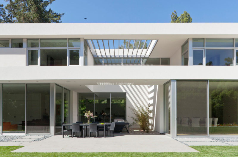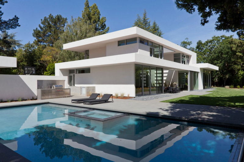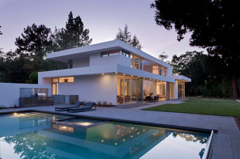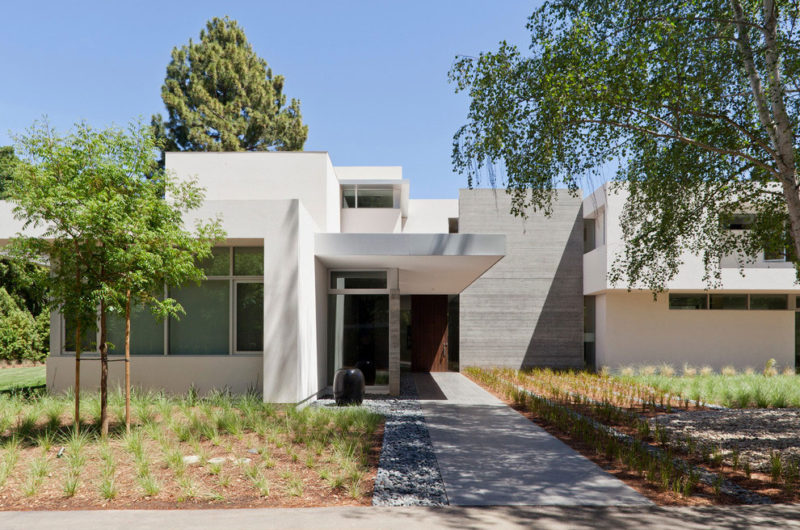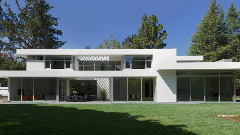 Flooded with natural light, the ARA Residence is a welcoming and comfortable abode that can be found in Atherton, California, USA. It was designed by Swatt Miers Architects and features an elegant, minimalistic exterior design that involves white walls and multiple windows. The ground floor flaunts sliding glass doors that blur the boundaries between the indoor and outdoor areas, while the upper floor has smaller windows for privacy purposes.