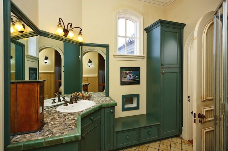 The 11,000 square foot stone detailed horse stable was built following the main house’s style and includes 15 stalls, a full tack room, a guest apartment, an office and three riding rings.