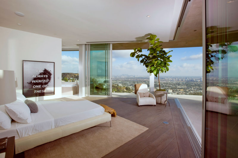 All living spaces provide access to the incredible views over the downtown and west Los Angeles, Santa Monica, the Pacific and Catalina Island. If you thought that having a water wall in your house is just about enough, well, it isn’t because the place also features a 75-foot-long lap pool suspended over the slope into the view.