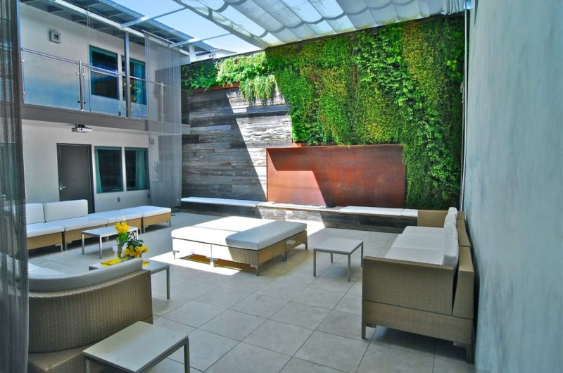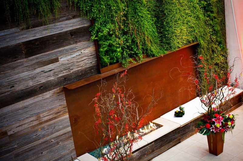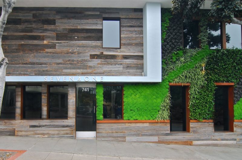 The building’s gorgeous façade comprises reclaimed wood that was taken from demolished constructions in east LA, Corten steel that adds an earthly quality and a two-story green wall reflecting the ardent hills.