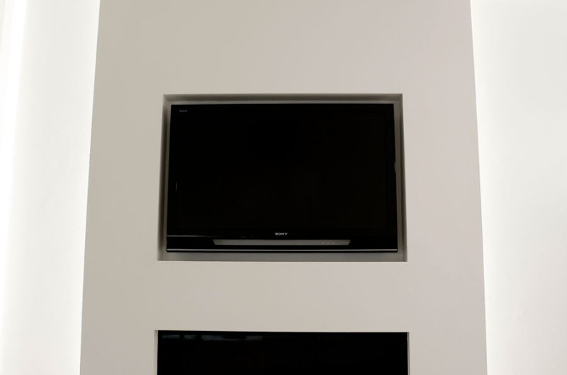 They created niches all over the apartment, and then hid lights in them, thus reducing the need for space-consuming lamps. Thanks to an iPhone-controllable Home Control System, the lights, the air conditioning and the fireplace can all be easily managed even from outside the dwelling, while on the way home.