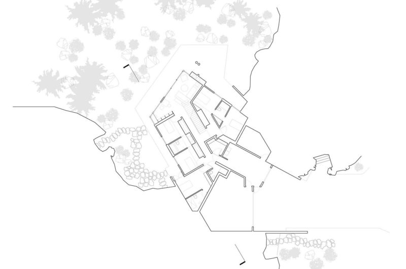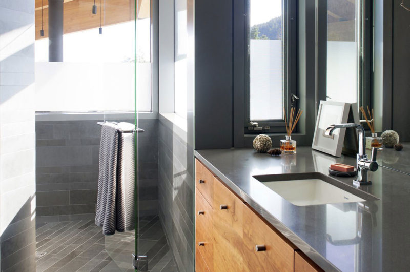 Unsurprisingly, the house was dubbed the Whistler Residence, and the architects managed to do exactly what the owners required. Even though quite large, the house seems very modest in size, thanks to some architectural and topographic tricks, such as the strategic removal of the bedrock in order to make part of the building appear to be below grade.