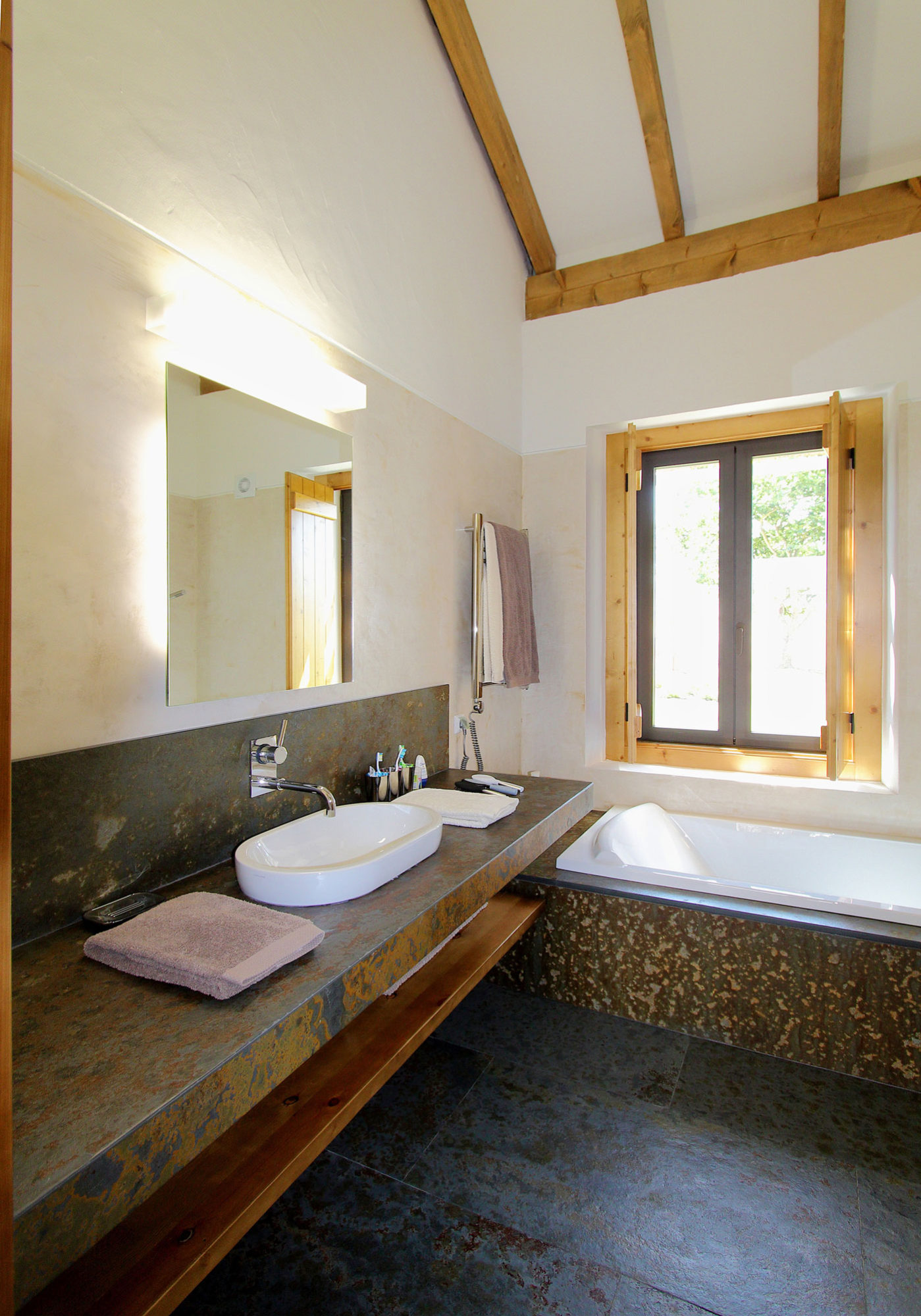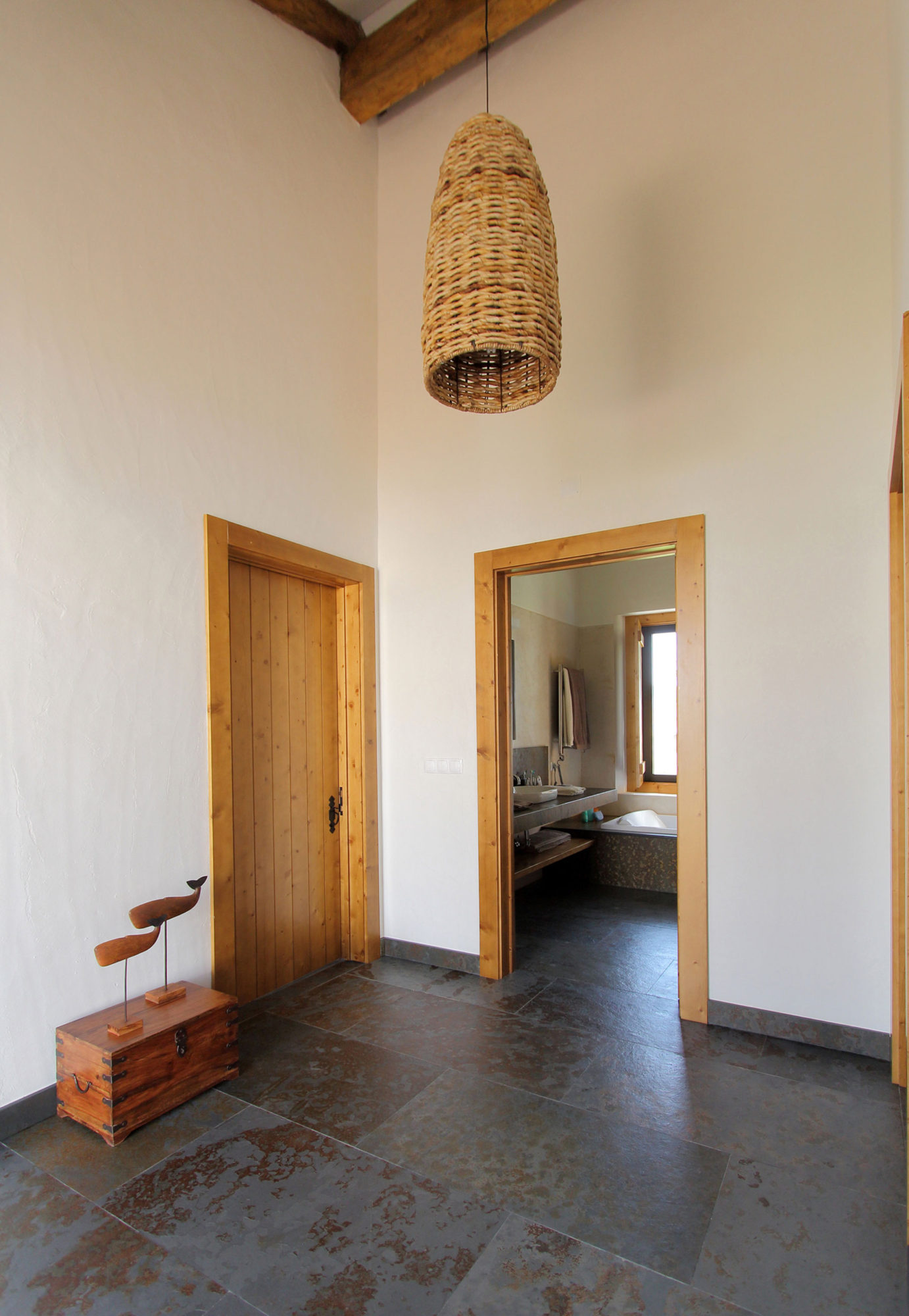 Speaking of its surroundings, this home is nestled on a 123-acre agricultural property that includes olive trees, vineyards as well as picture-perfect hills and plains. As we mentioned before, the home features a distinct U shaped layout, which means that it is divided into 3 main sections. The southern part of the abode contains the 4 bedrooms, while the opposite side to the north includes the service areas, a kitchen and a small dining room. The central part of the abode faces west and involves the entertainment and social areas such as the living room and the dining room. Furthermore, this U-shaped design facilitated the creation of a private central courtyard, which ensures quick and easy access to all of the 3 separate wings.