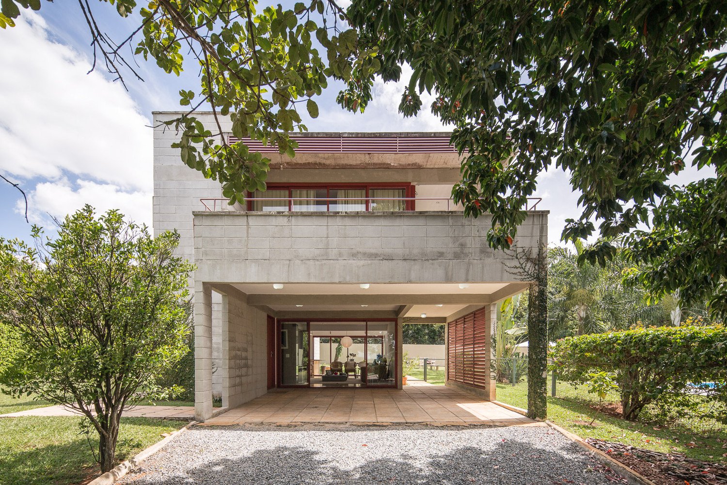 The premise of this project was the construction of an affordable house easy to maintain. The construction system adopted must also meet these customer expectations; the pillars were built with concrete blocks, the same blocks used in the enclosure of the house. This allowed both wood economy and a simple architectural plastic expression, defining the continuous planes of the facades, interrupted only by the beams which enhance the horizontality of the building.