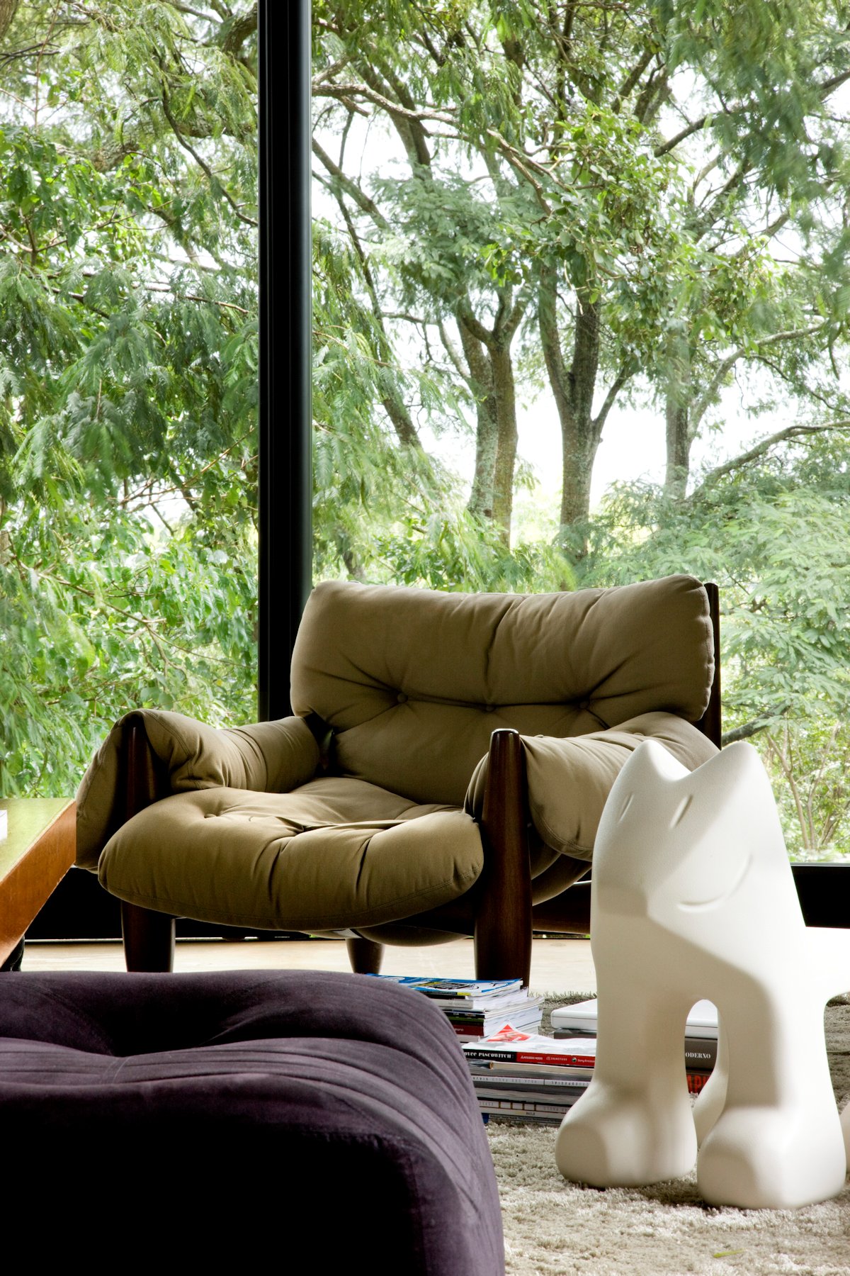 Thanks to its massive windows, the 2-level abode ensures breathtaking views of the nearby trees and plants, but what makes this home really special are the comfortable, cozy and welcoming living arrangements that can be found within. For instance, the fully equipped kitchen features a plethora of high-end appliances and amenities, while the main living room boasts a large central table, a flat-screen TV as well as superb seating arrangements throughout.