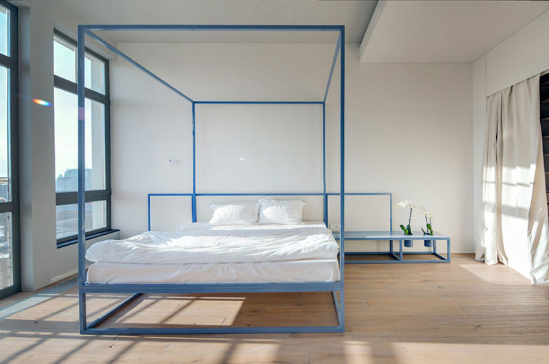 Beige, light brown, white and light tones of blue for contrast adorn the walls, furniture pieces and the décor elements of this amazing apartment. Furthermore, aside from its airy open spaces, natural wood finishes and modern amenities, the loft also impresses with breathtaking views of Ukraine’s capital city.