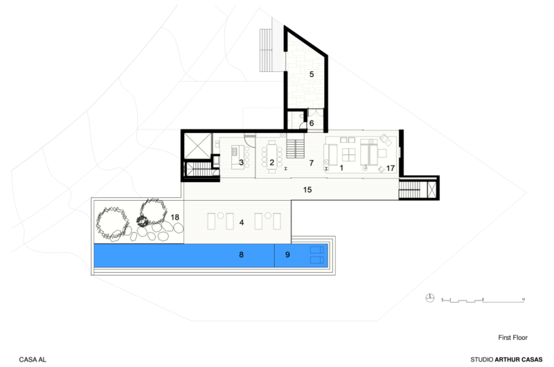 The construction process involved high-end materials such as cumaru wood and local stone. The interior furnishings are modern yet elegant, and some of them were sourced locally from Brazil. Spacious, luxurious and aptly designed, the AL House conquered the difficult topography of its surroundings and became a superb example of modern and intelligent architecture.