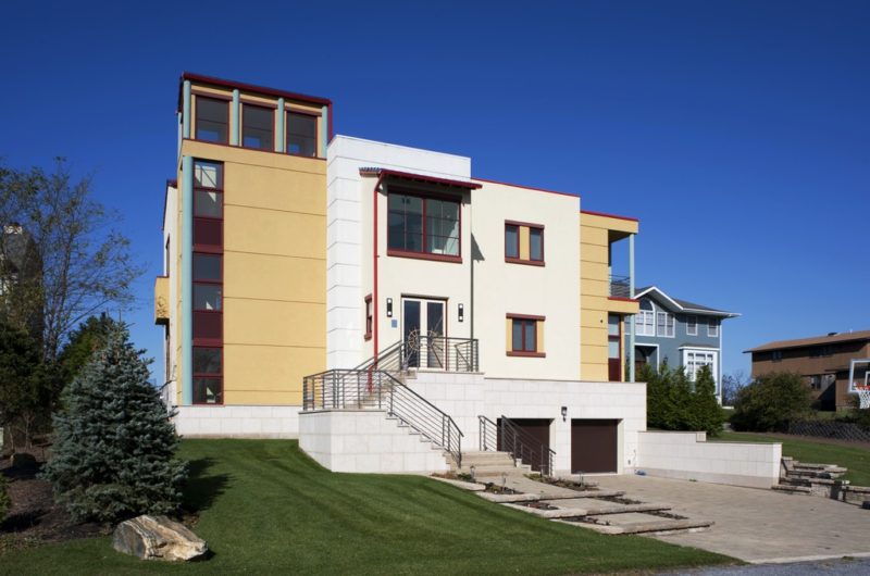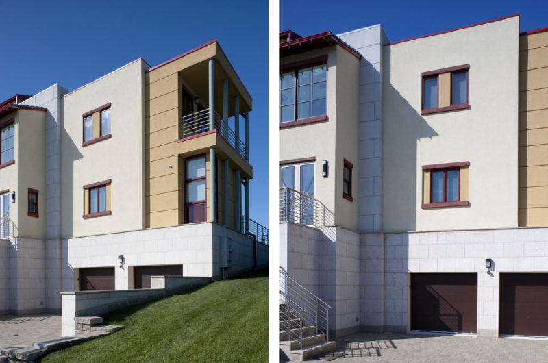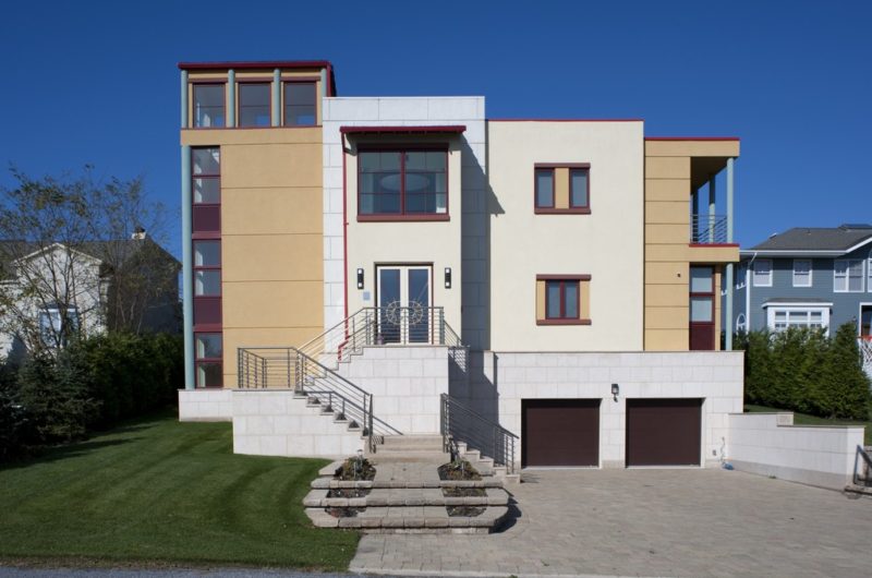 The 6,647-square-foot residence was designed by SS.MM Design and completed in 2008. The building is made of several different volumes, each having an urban or rural character, according to its function. The main living spaces are placed around the main central axis, and offer beautiful views of the private beach and the surrounding area.