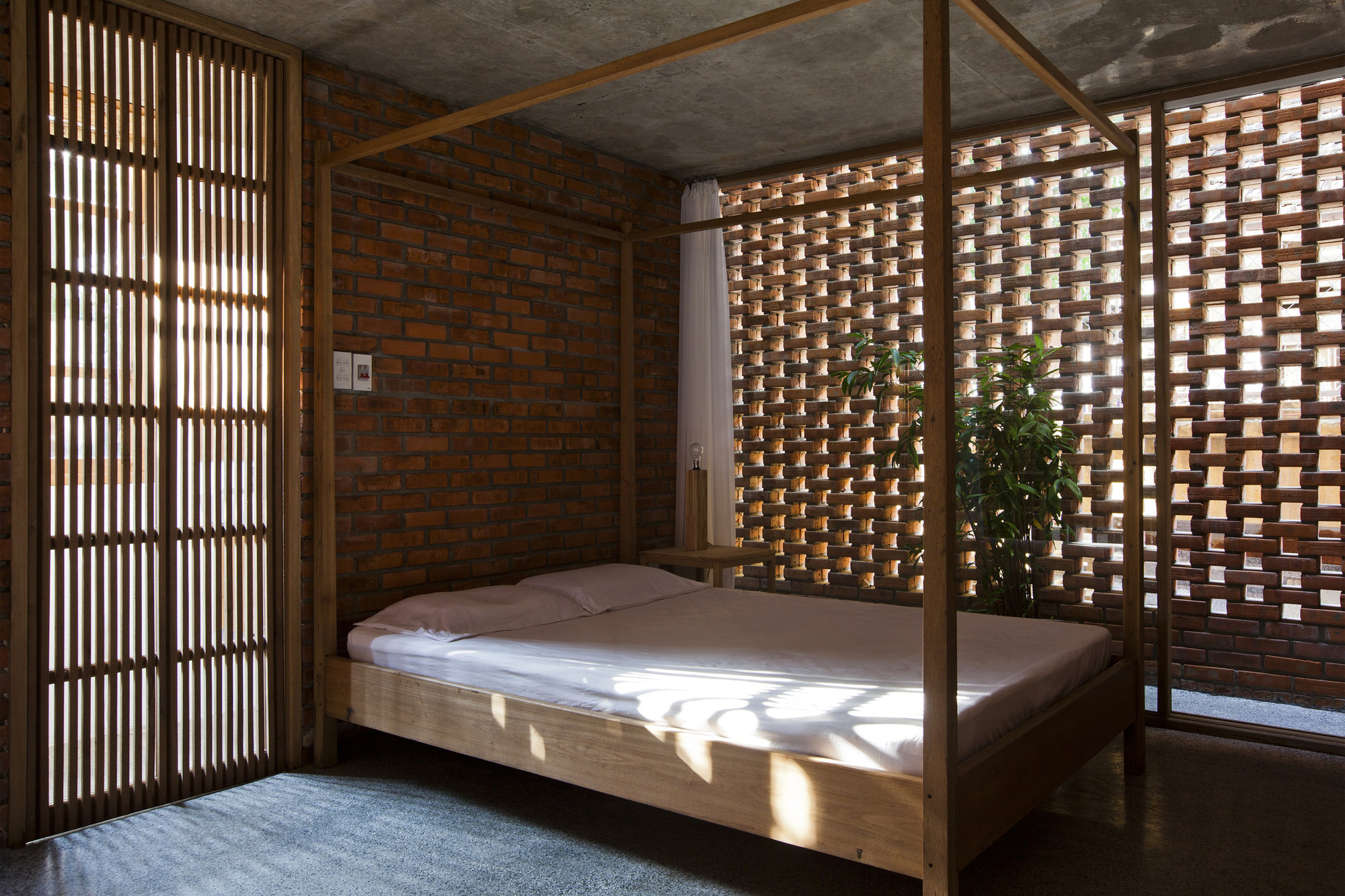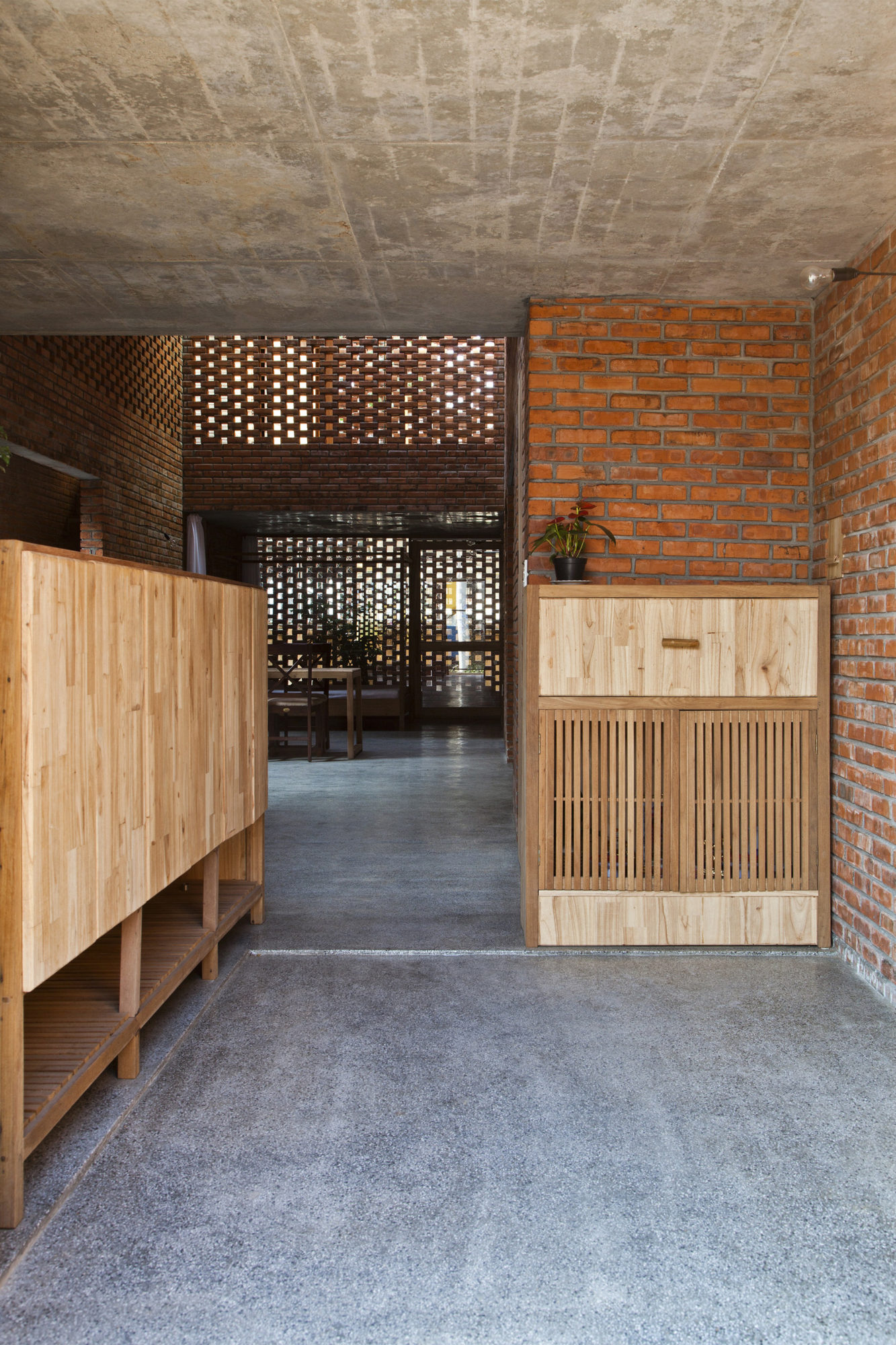 The house is mainly built with baked bricks which are also a traditional material in the local area. They are the very material to have been used for the construction of the mysterious ancient Champa towers. The ceilings are casted with original concrete, and the floors are covered with terrazzo in dark colors. All furniture is made with the timber from the roof of the old house, which helps make the total actual cost of the construction a significant saving (about under 22,000 usd)