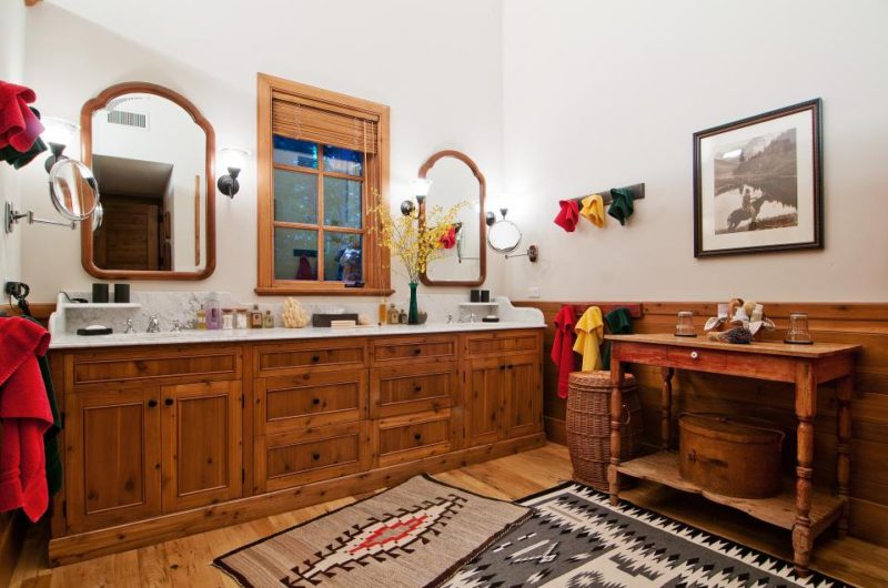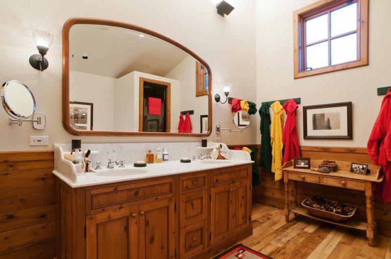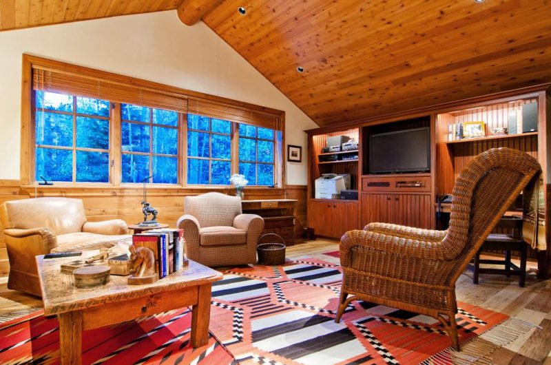 Well-known architects Charles Gwathmey and Rick Otto sketched out the layout of the building and the New Star Construction firm made it a reality. The interiors were designed by Naomi Leff and were appointed with exquisite art pieces, beautiful furnishings and warm elements that give off a mountain western feel.
