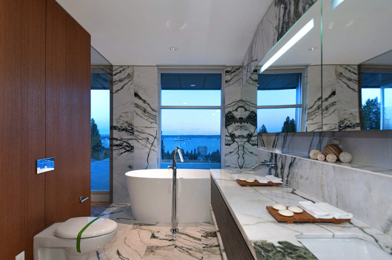 The Palmerston Residence is a 3,745 square foot home designed by Canadian architect Mehran Mansouri on sale for $4,3 million Canadian dollars. This emblematic and luxurious house is situated in West Vancouver, BC, Canad, and comes bundled with an incredible view of the Pacific Ocean. Its highly resistant steel structure was designed to make the construction be able to withstand natural disasters. Consists of three levels with large open-space living room, a linear kitchen, an entertainment room, indoor cinema, 4 bedrooms (three of them with en-suite bathrooms) and the icing on the cake -a waterfall on top of the full-concrete garage, all these covered in good taste, refinement and the pleasure of living life to the fullest.