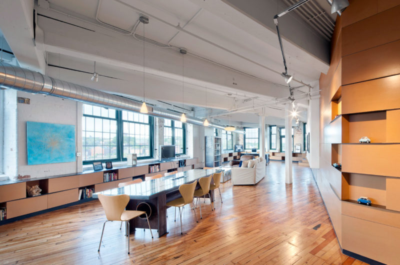 Paschke Danskin Double Loft is located in the district of Providence, Rhode Island, USA and was renovated by 3six0 Architecture in 2009 who managed to put together accommodations for two people with different professions.