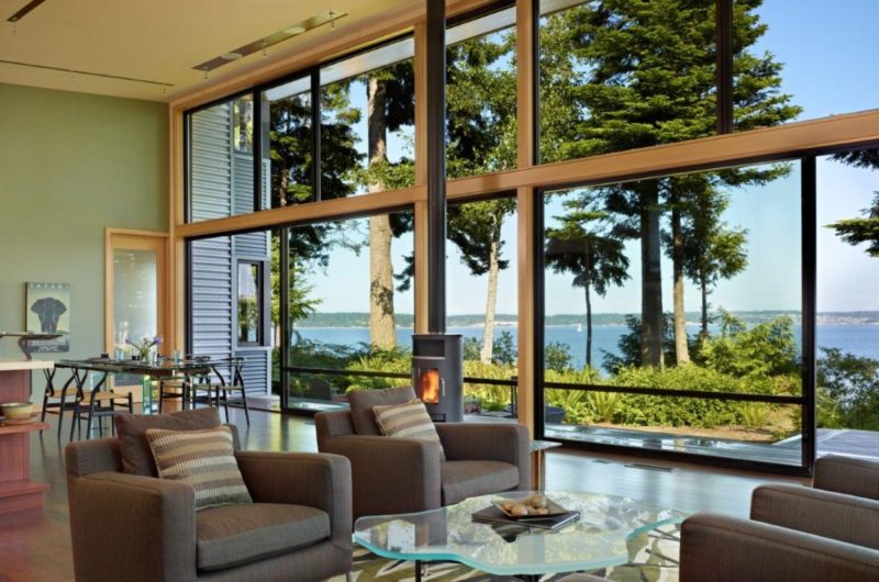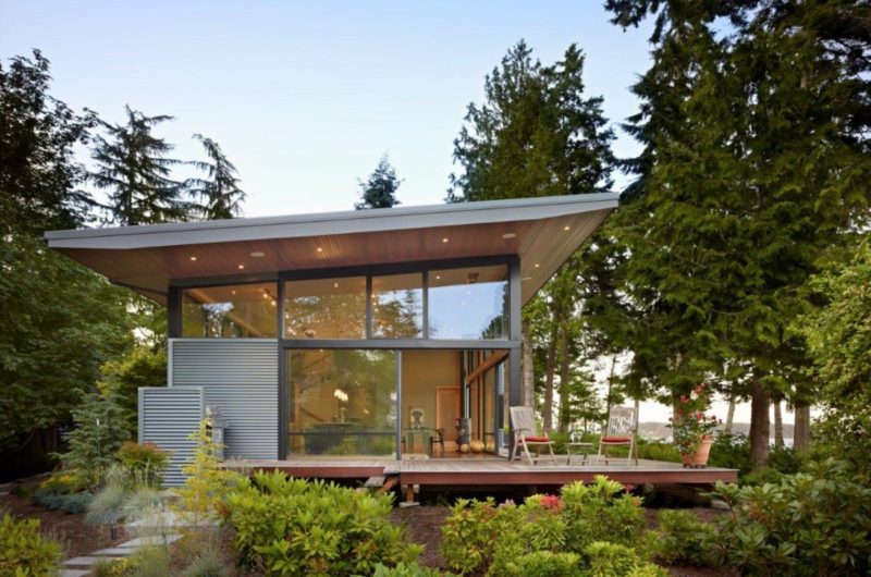 Located in Washington State, the Port Ludlow Residence by FINNE Architectsis a compact, 2400 SF modern house that lies on the edge of the gorgeous Hood Canal. The connection with the green landscape is made through the 12-ft. high glass walls facing the view and big 8-ft.x8-ft. sliding glass doors that open towards a wood porch.