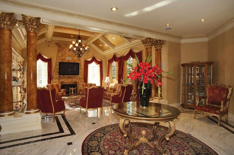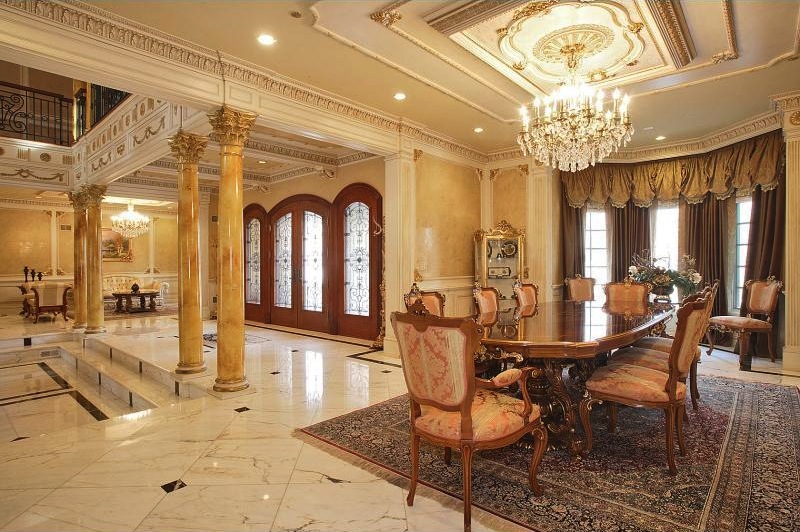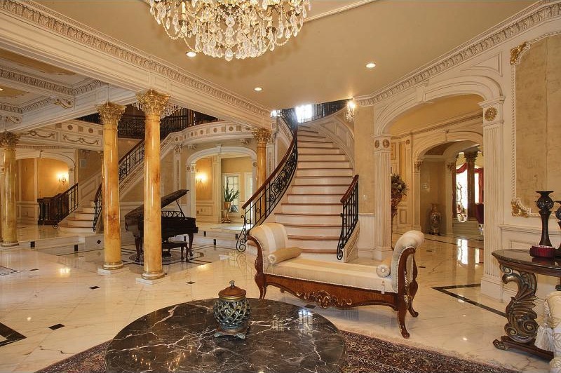 This stunning estate features the finest and the most luxurious details ever seen such as marble floors, super detailed moldings and wainscoting, columns with gold capitals, imported floors and 10 foot ceilings.