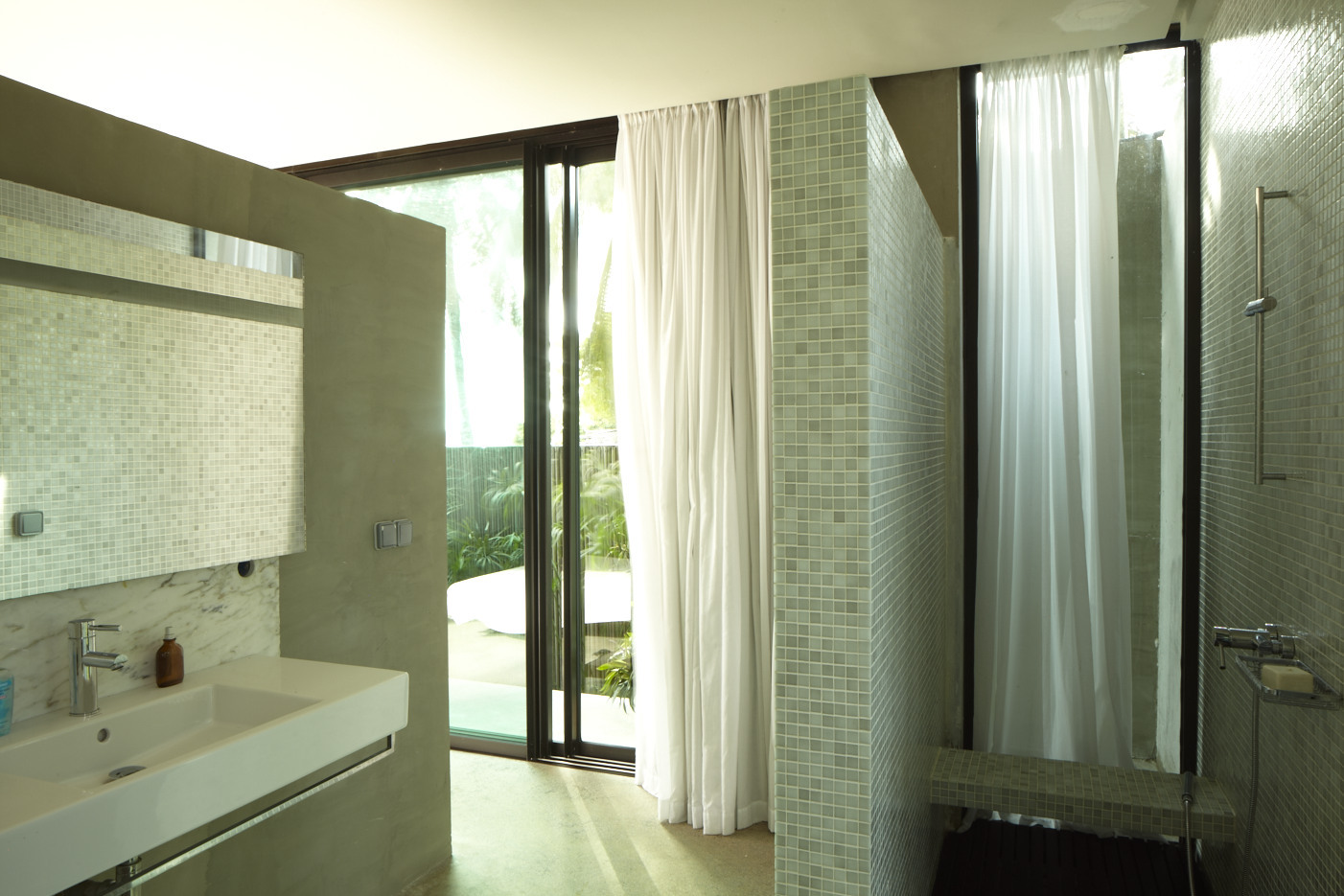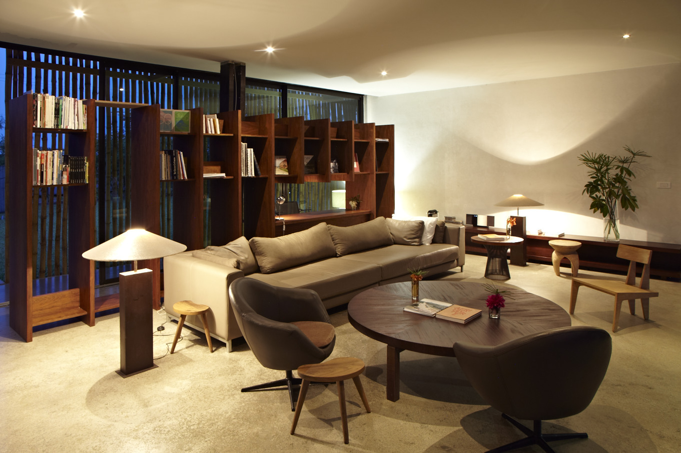 Key features of this pavilion are the use of bamboo from Assinie-Mafia for the house fence and the fact that the house can become a true open space, due to the integration of glass slide doors (as opposed to brick walls) used as walls all around the house.