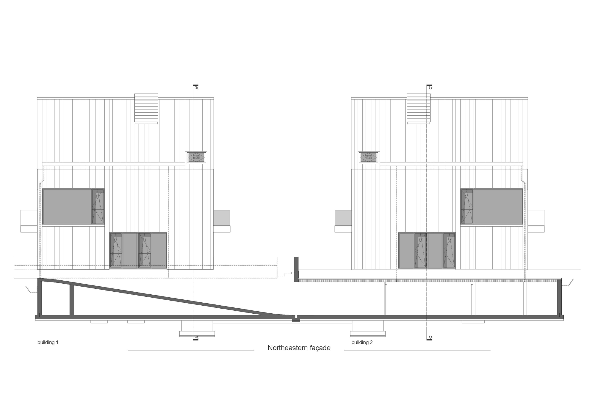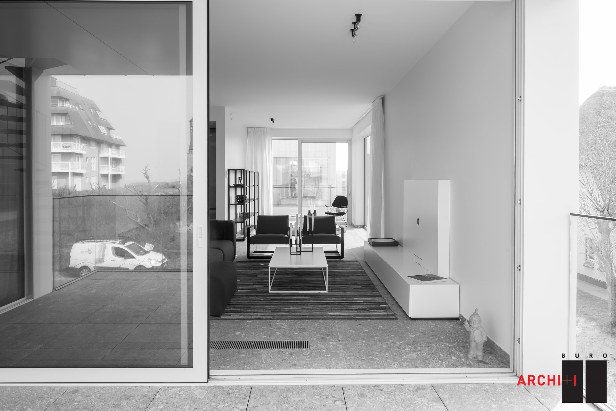 The design of these two multi-storey properties respects the scale of the adjacent residential centre. Both buildings are able to optimally integrate in the landscape as a result of their underground garage and the planting of dune grasses. The buildings each consist of two floors plus an attic floor. Each floor houses a three-bedroom apartment or duplex. A uniform design was adopted for the façade and the roof to achieve a striking and distinctive architectural style. The preferred choice was white aluminium, as a contemporary application and interpretation of the white coastal architecture. The shell was constructed using a white aluminium standing seam system, which is ideal for use on the wall as well as the roof. Due to its scale, purity and simplicity in terms of volume, façade composition, details and use of materials, the buildings blend effortlessly into their surroundings. The open space is planted with dune grasses, through which a path meanders to the entrance and terraces of the ground floor apartments.