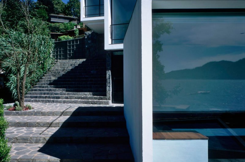 This residence has a double personality, so to speak. From the street it seems a normal house made of natural stone and wood, with a roof made of tiles, and plastered façade, but looking from the lake, the building opens itself as a series of dynamic modern volumes, with large glass surfaces, which connect the interior with the beautiful surroundings.