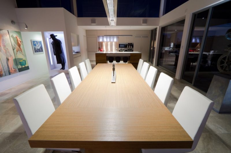 The social areas of this house are friendly, open spaces. For example, the living flows to the external pool, these two architecture elements being connected by one large glass window. The architects preferred playing with the ceiling that seems to dive into the house, creating differently dimensioned internal spaces. For this, Pacific Teak was used to create an interesting ceiling that enhances the internal spaces.