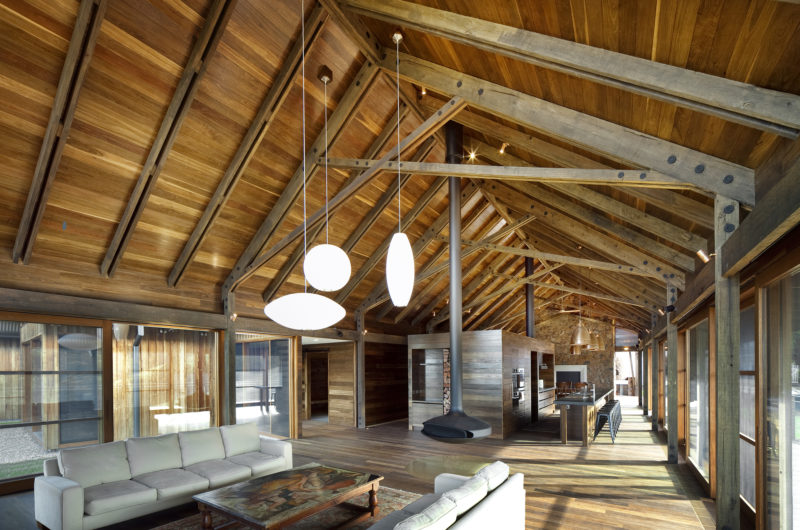 The exterior walls illustrate the local tradition because of the local field stone and vertical Blackbutt lining boards with cover battens that were used in building them. In exchange, the interior design abounds in elegance and beauty because of the Blackbutt floors and the wall and ceiling linings which reinforce a strong timber character.
