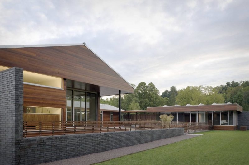 This modern house in Springfield, Missouri, was designed by Hufft Projects. It was planned as a U-shape building with a private courtyard.