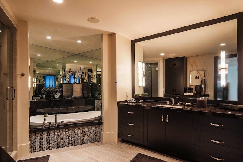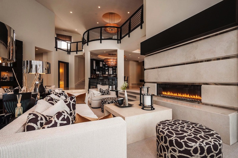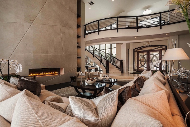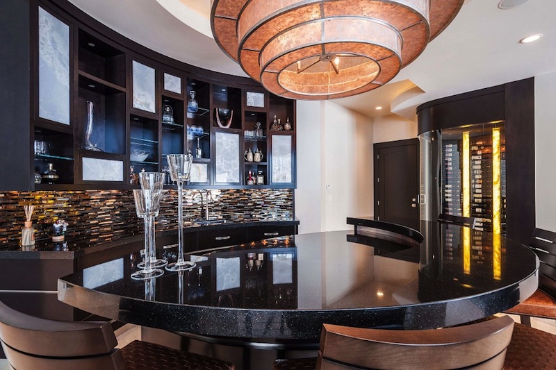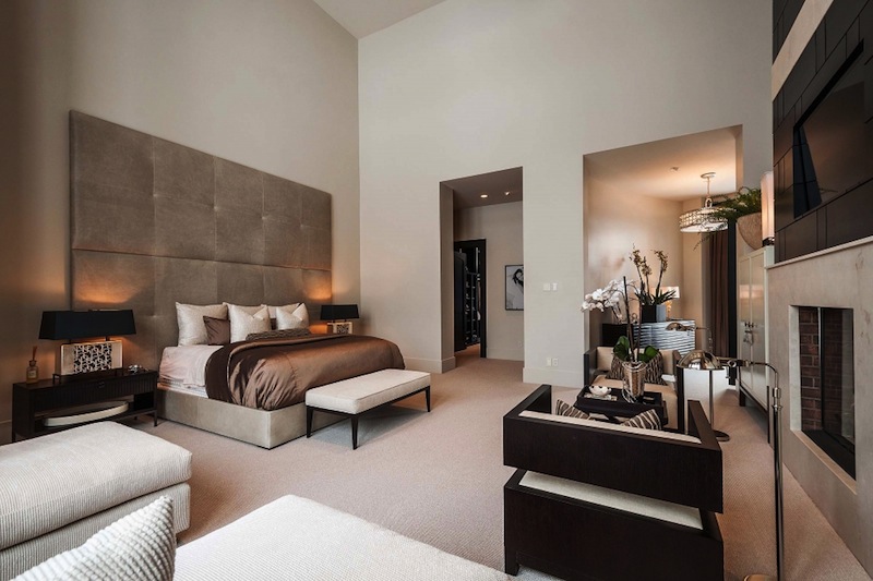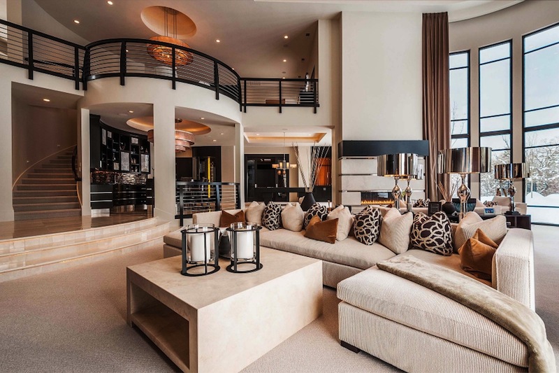 The floor to ceiling windows provides amazing views of the mountains and natural light all day long. The master suite from the main floor disposes of a closet and sauna, a steam shower and 2-story workout center. On the main floor we will also find a 16-18 seat dining room and a golf simulator.