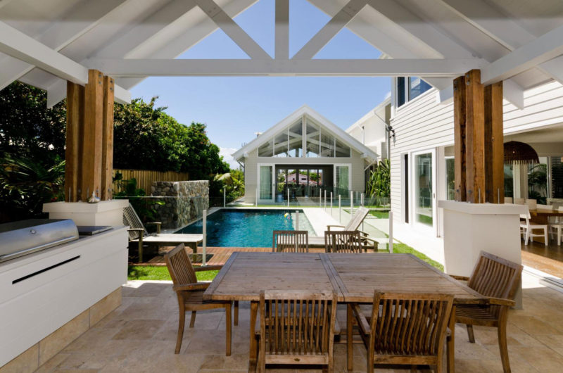 Apart from its sublime interior decorations and conveniences, the outdoor areas encircling this lavish abode promise endless opportunities for relaxation and entertainment thanks to a large swimming pool and a nearby barbecue area.