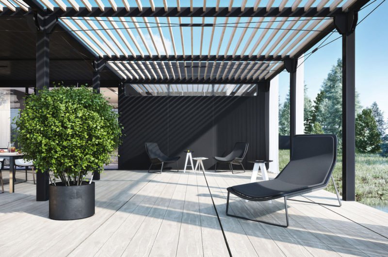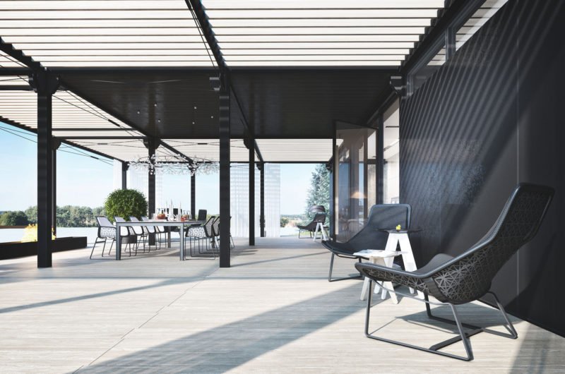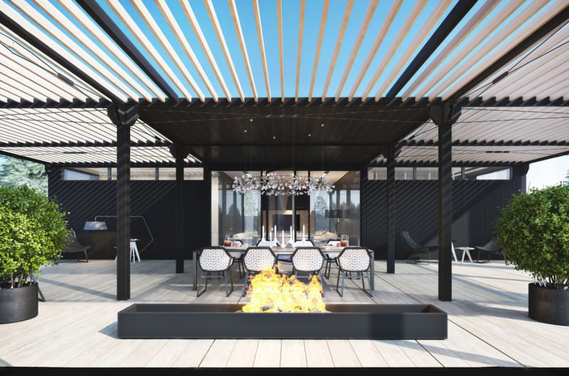 Spacious, minimalistic and utterly luxurious, the YT 9 House was designed by Igor Sirotov Architect. It is a perfect home for any entertainer, as it includes a large outdoor wooden deck with a dining table for eight and a modern fire pit that creates a warm and welcoming ambiance. The outdoor dining table offers stunning views of the nearby waters and of the natural vegetation surrounding the house, while the interior dining arrangements are considerably more private.