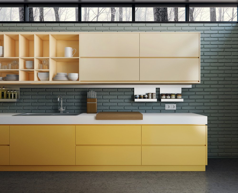 Secondly Mustard, A kitchen colour trend that’s been popping up in recent years is mustard. This yellowy-brown shade adds a cosy feel to any kitchen, and it can be easily paired with other earth tones like terracotta and brown.