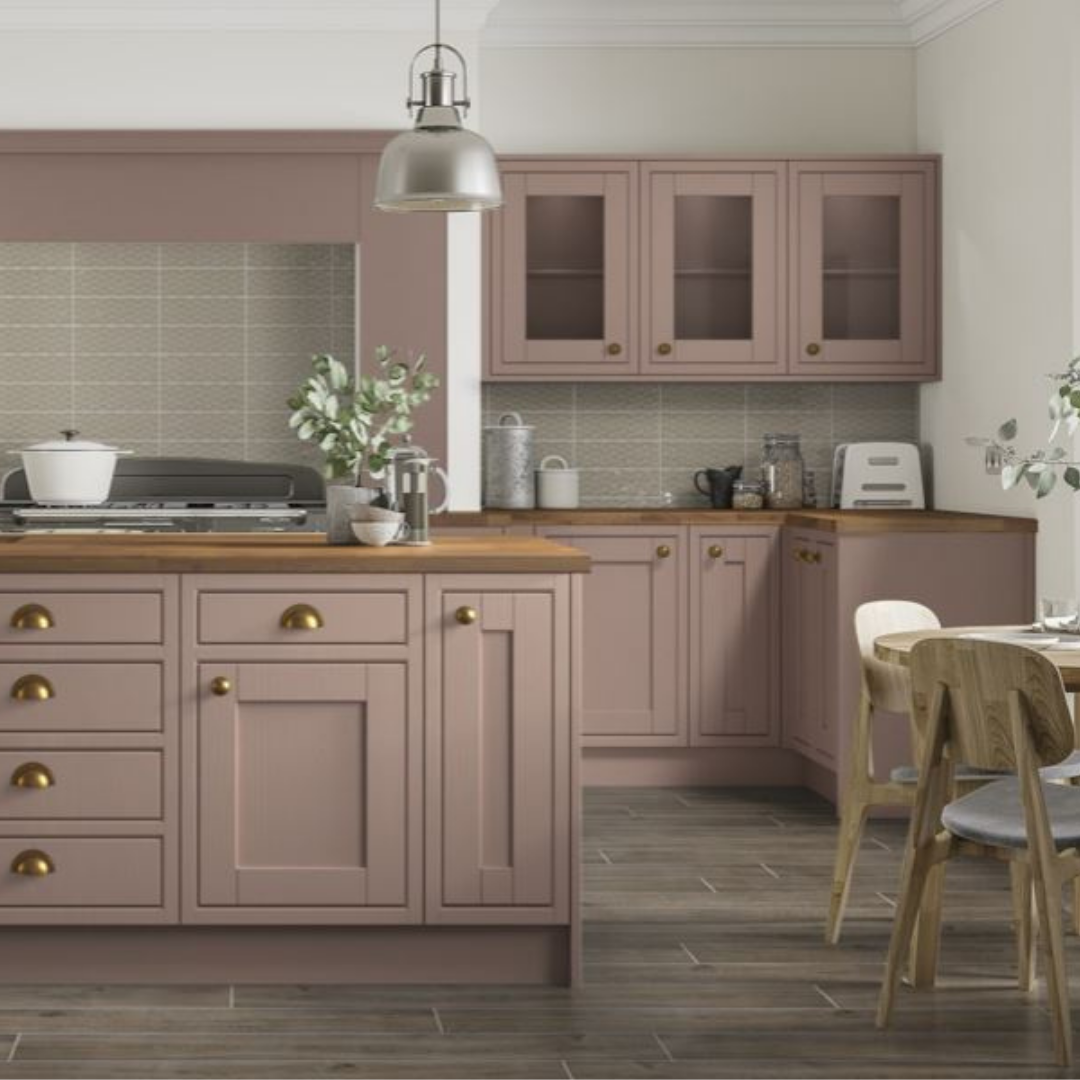 Fourth Dusty Rose, If you’re looking for something more subtle, opt for this classic kitchen colour trend that’s set to be big in 2023. Dusty rose kitchen colours are a great way to add a touch of sweetness to the kitchen and it pairs well with both natural wood accents, as well as metallics.