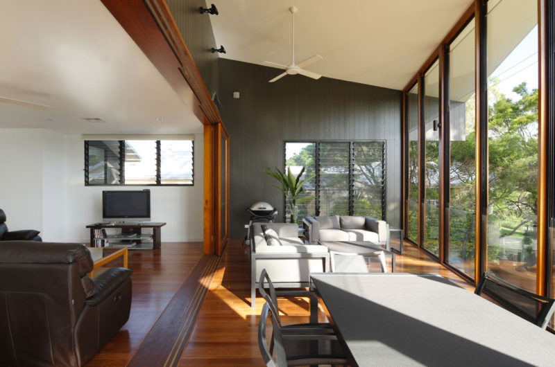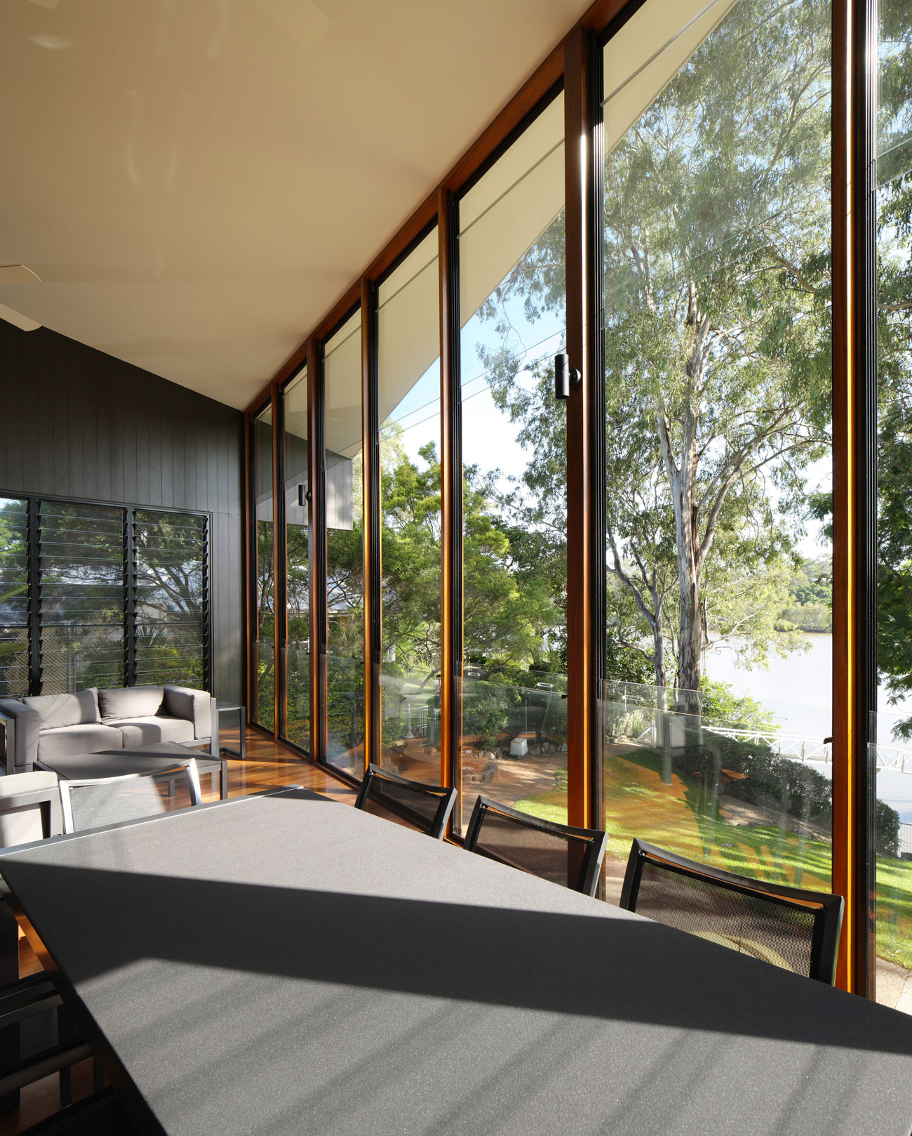 The barrier standing between the indoor and outdoor spaces was replaced by crafted timber doors so the entire space to be opened up as one area or split in order to suit the heating or cooling requirements.