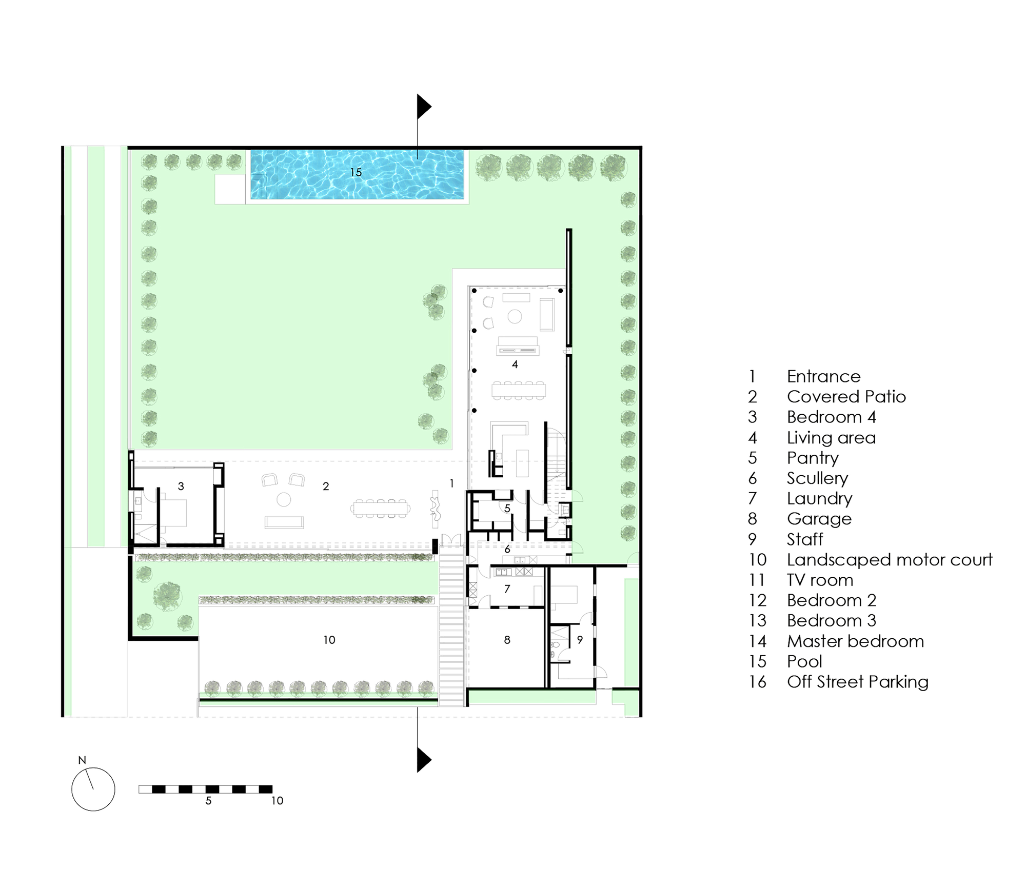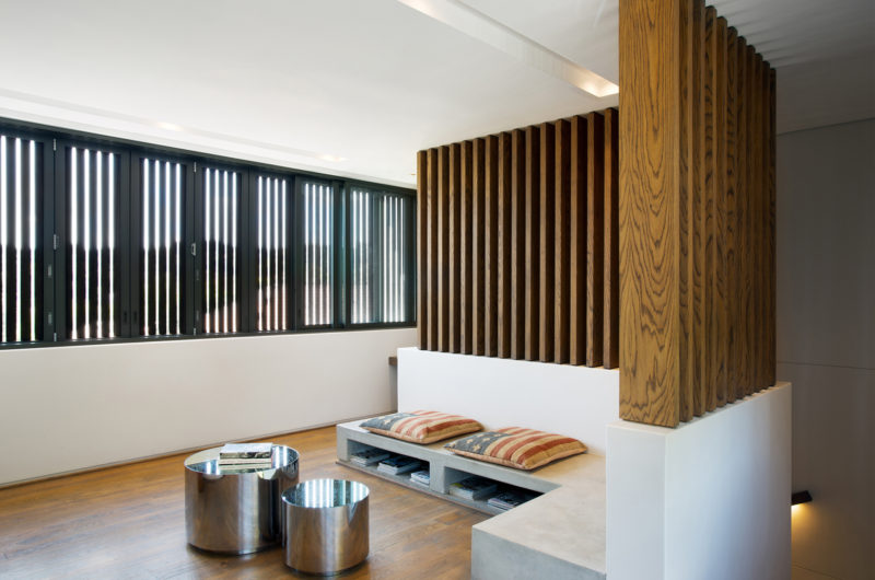 House 01 is a fabulous residence that was sketched out by a firm called Daffonchio & Associates Architects. The residence can be found in Hyde Park, Sandton, South Africa, and it impreses with great versatility since it is able to adapt according to its owner’s needs. The ground floor of House 01 features sliding doors that can be moved completely in order to allow the main living room and the outdoor patio to merge. The bedrooms and the TV room can be found on the first floor, which is why the northern façade of that floor was outfitted with a series of timber shutters, which ensure thermal comfort by providing shade.