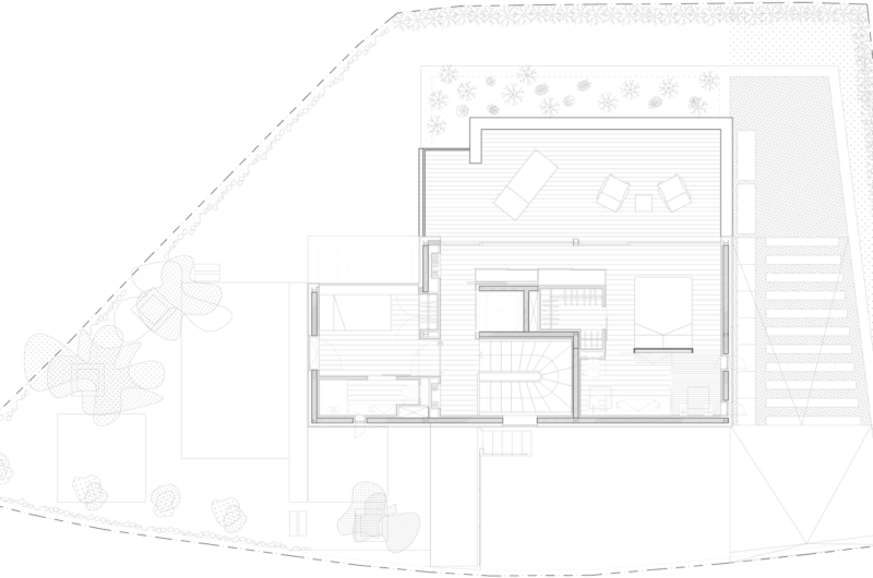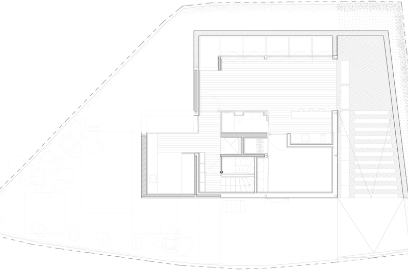 Topography plays an important role in accessing the house and for the interior-exterior tour.
