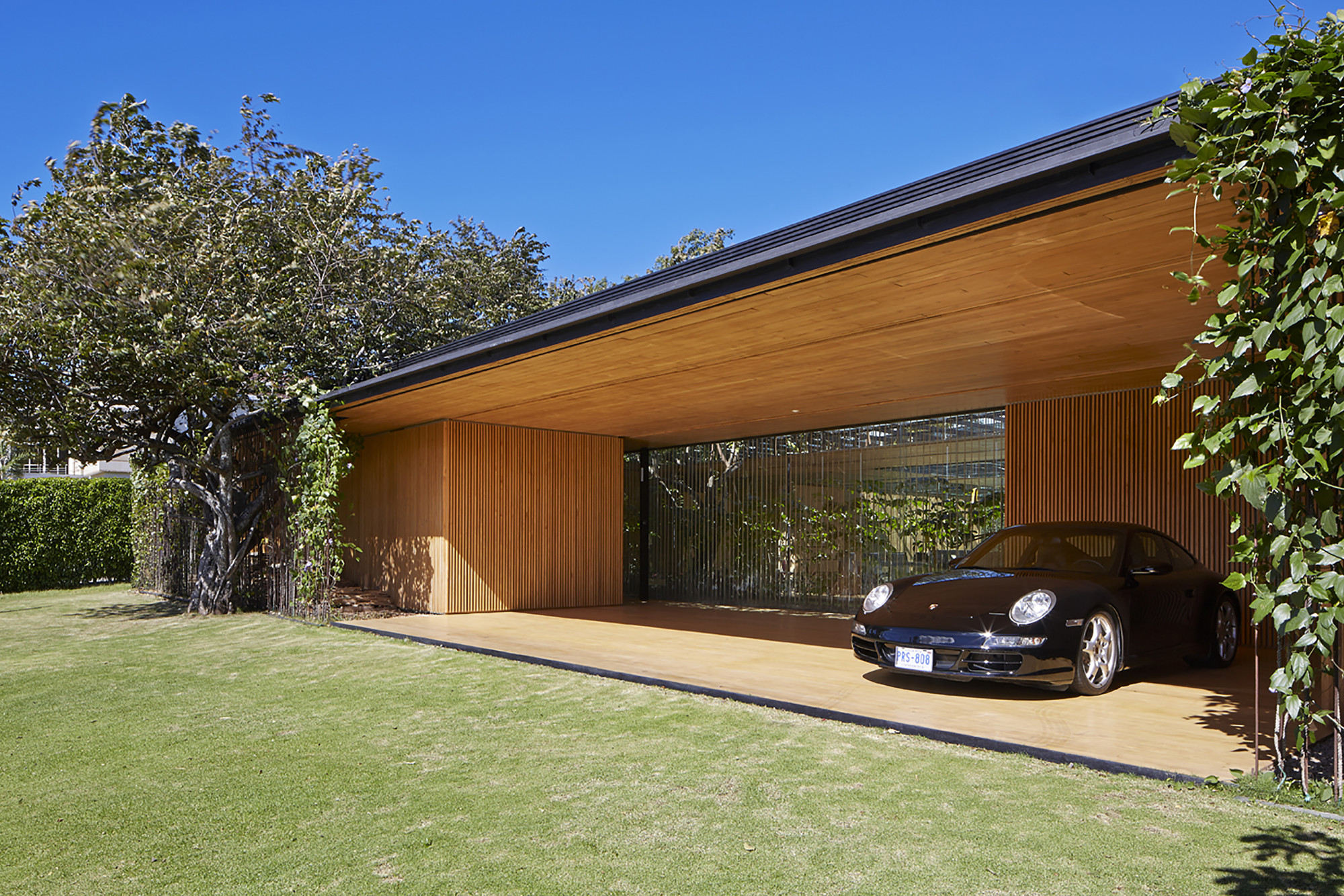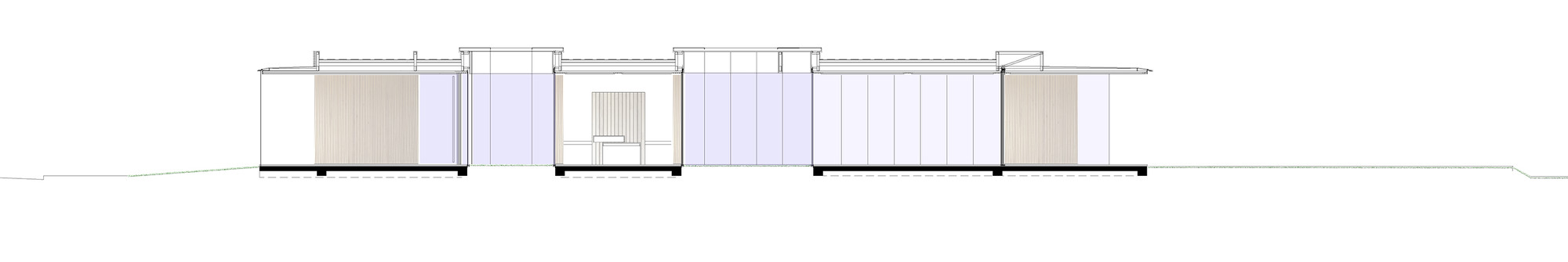 A perimeter curtain of rope and vegetation delineates the limits of the building element, creating a gap of shadow / light that qualifies a space between.
