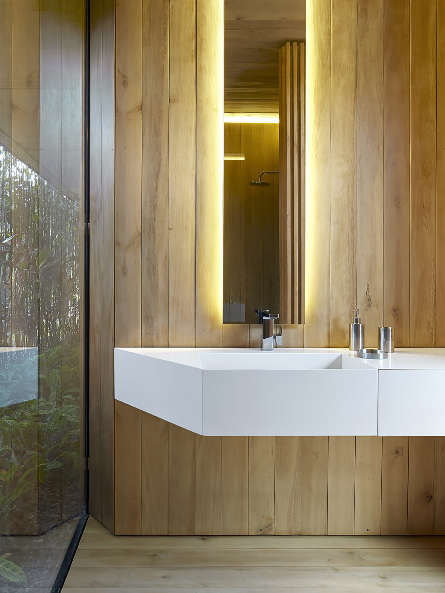 A single material, Melina wood, dresses the inside and the outside. The apparatus varies: the outside is expressed as a relief while the inside is softened .