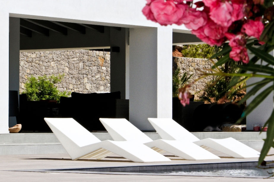 The outdoor swimming pool is surrounded by a deck and its location provides views of Ibiza town, the sea and of the Formentera Island.
