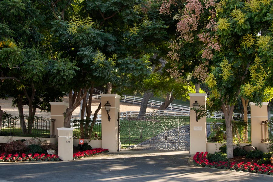 Villa dei Fiore is a superb residence located on a 24-acre property in Thousands Oaks, California. It was built in 1986, with 4 bedrooms, 6 bathrooms, and a total of 9,203 square feet of interior spaces. The property is sprinkled with imposing oak trees, and it features extensive, beautifully landscaped gardens. You can find it 35 miles away from Los Angeles, in a tranquil setting that will make any privacy seeker very happy.